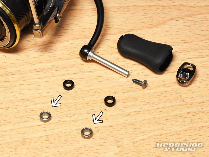 エアローターや精度の高いタフデジギアなどの恩恵で巻き感が滑らかなリールではありますが、ハンドルノブにベアリングを追加することでさらに上質な巻き心地と感度を向上させることが出来ます。