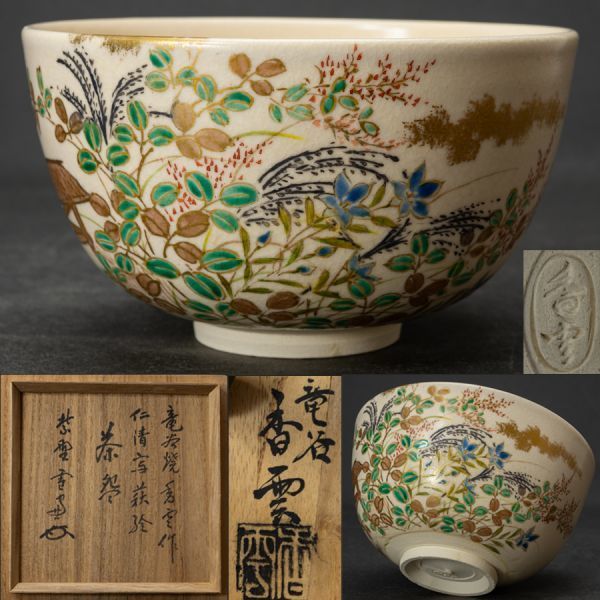 【茶道具】名工 竜谷窯 宮川香雲 仁清写 萩絵茶碗 大徳寺十一代管長 小田雪窓書付 四方桟桐共箱 共布 保証品