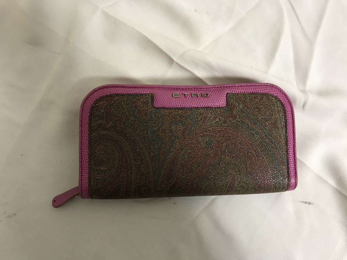 商品名:本物エトロETROラウンドファスナージップ長財布サイフ札入れメンズレディースビジネススーツペイズリー柄ピンク茶ブラウンイタリア製