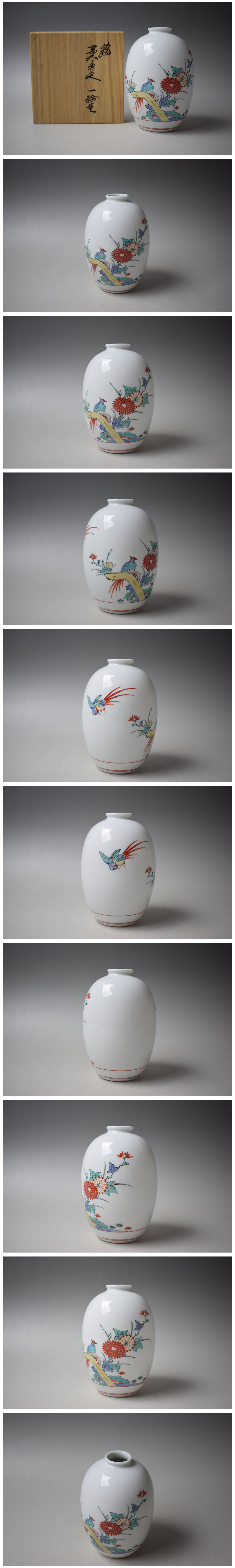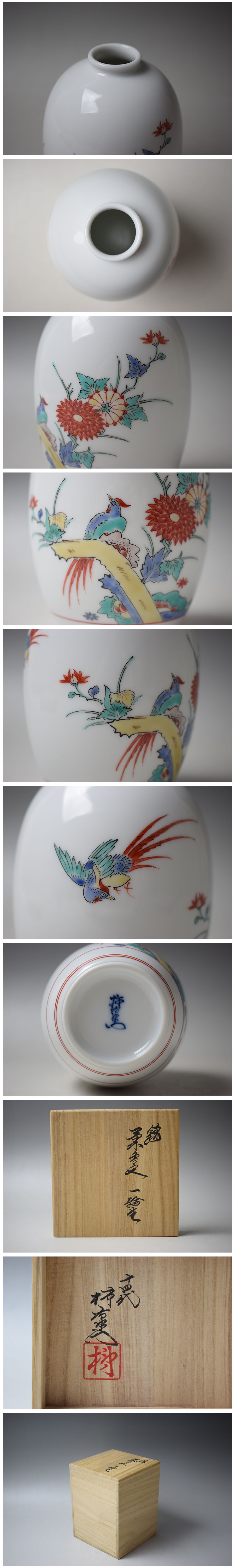 【十四代 酒井田柿右衛門 錦菊鳥文一輪生 小花瓶 共箱 柿右衛門窯 真作保証】