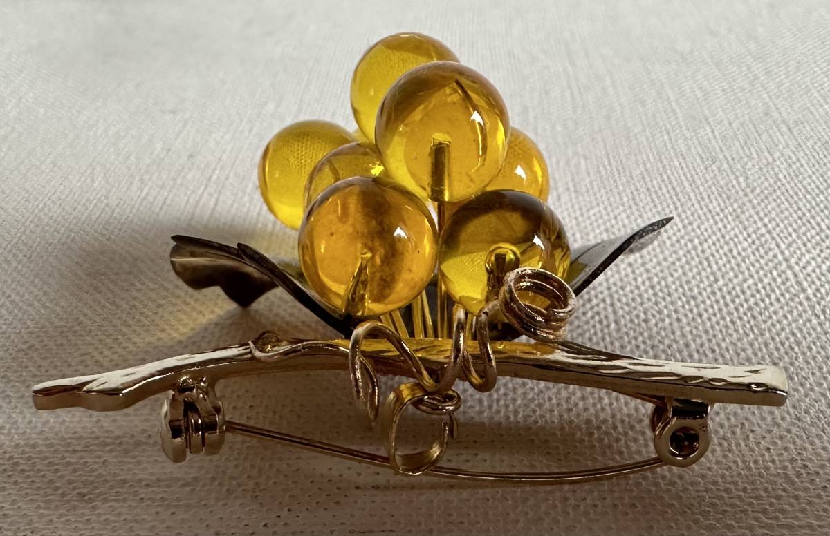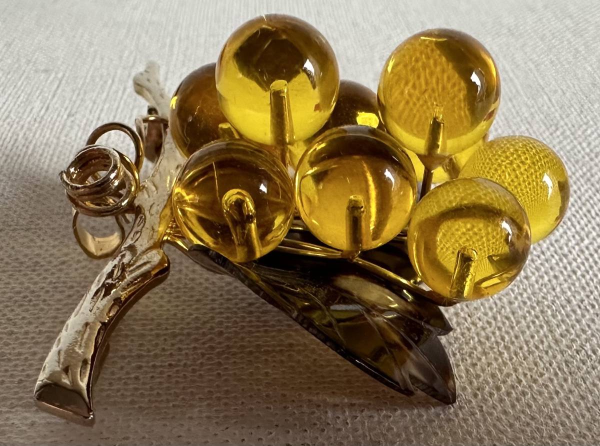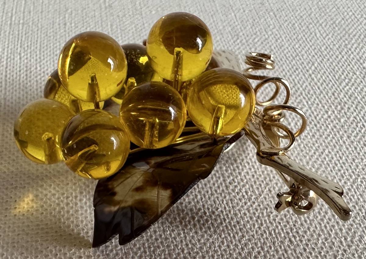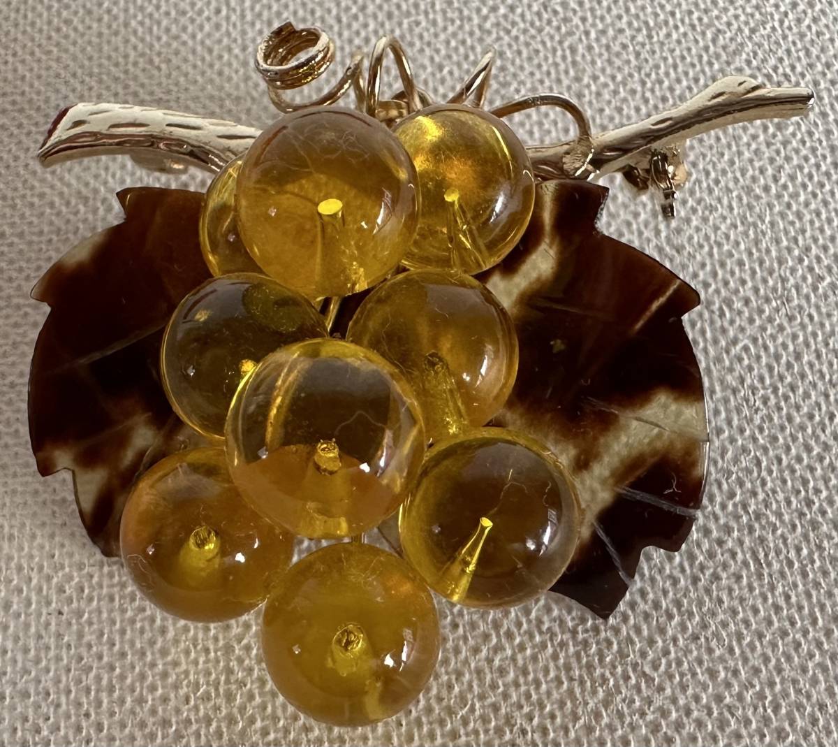 本鼈甲保証 葡萄モチーフブローチ 美品です。サイズ:全長5cm。全幅4cm。葡萄モチーフのブローチは葉の部分が本鼈甲素材であると思います。画像にてご判断願います。箱付。ご理解頂ける方のみノークレーム・ノーリターンでお願いします。