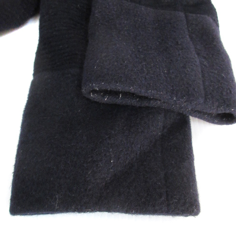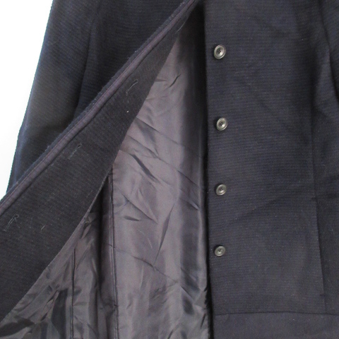 グリーンレーベルリラクシング ユナイテッドアローズ ノーカラーコート ロング丈 ウール シングルボタン ボーダー柄 40 紺 レディース