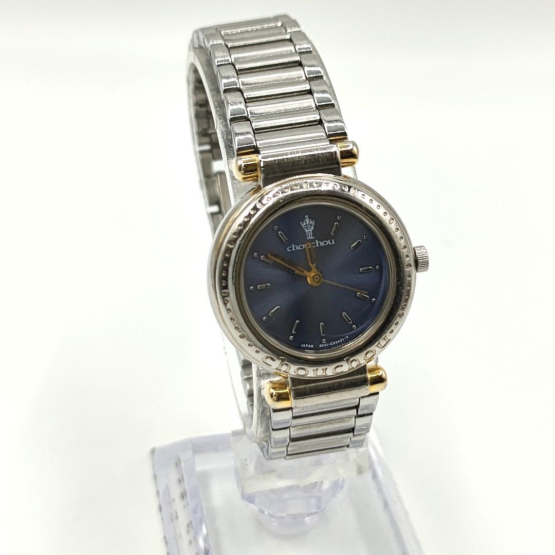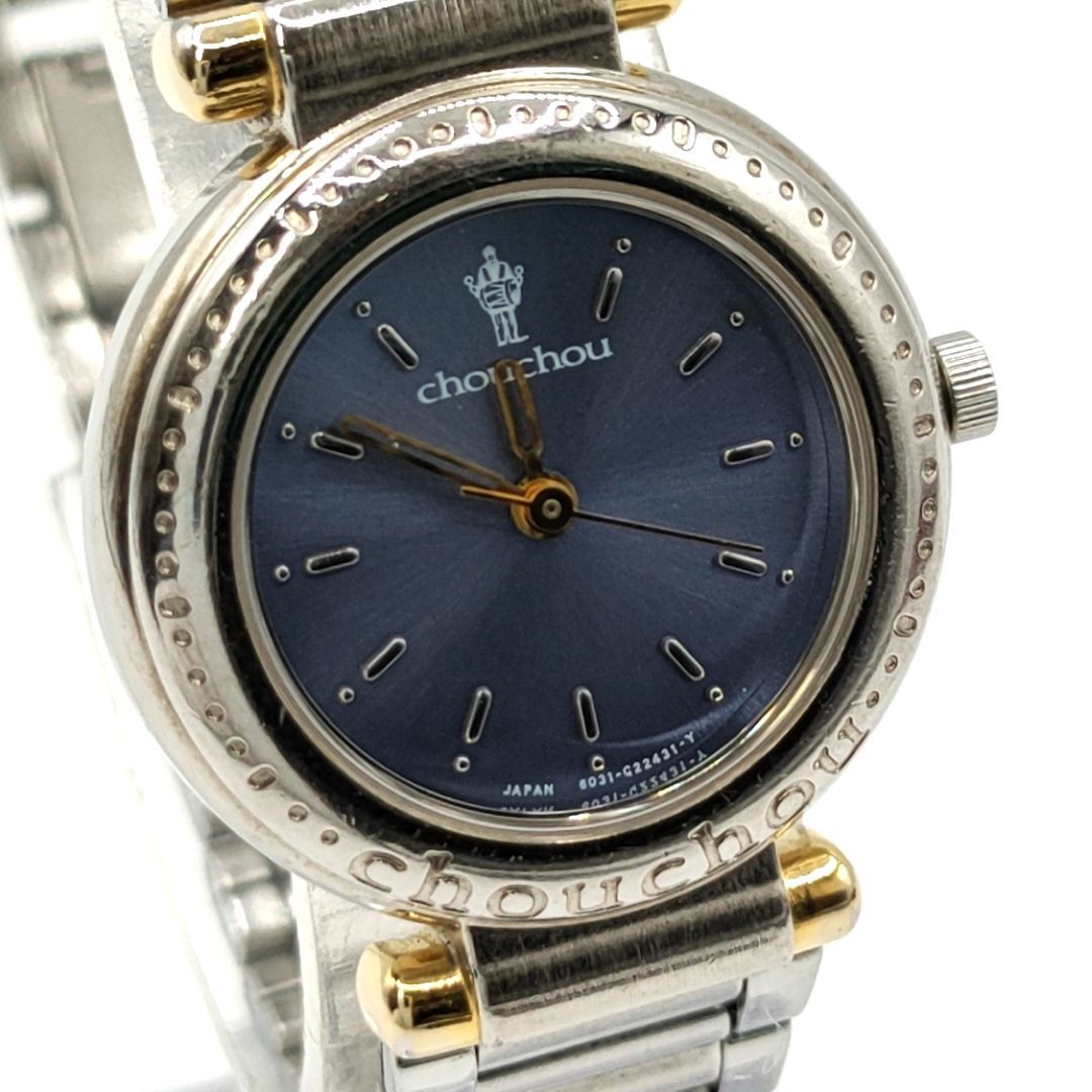 chouchou クォーツ腕時計 青文字盤 ラウンド ベゼルロゴ レディース