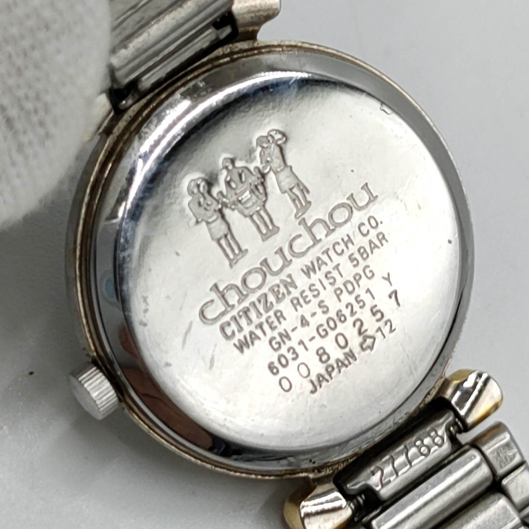 【電池切れ】CITIZEN シチズン chouchou クォーツ腕時計 青文字盤 ラウンド ベゼルロゴ レディース 6031-G06251