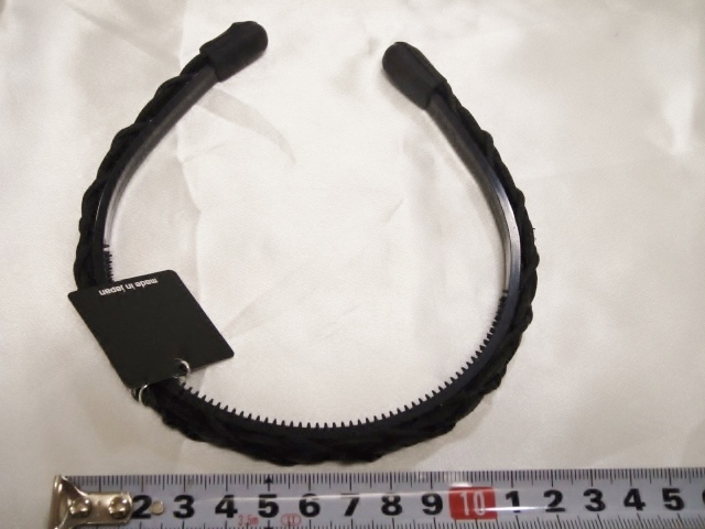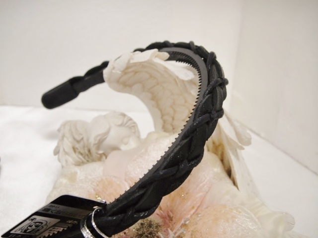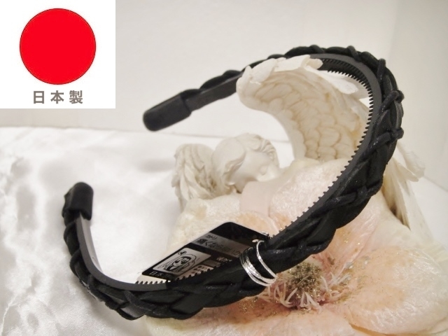 ♪ 新品 カチューシャ 日本製『高品質/本革/レザー/編込み&コードクロス/中太/頭が痛くならない/パールブラック/黒』♪