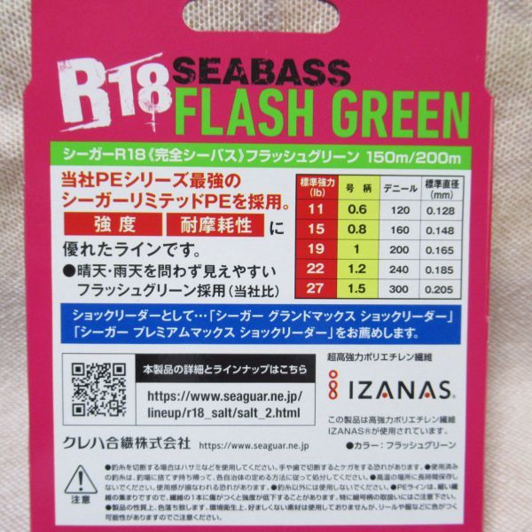 シーガー R18 完全シーバス フラッシュグリーン 150m 0.6号 新品未使用