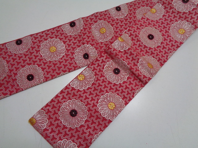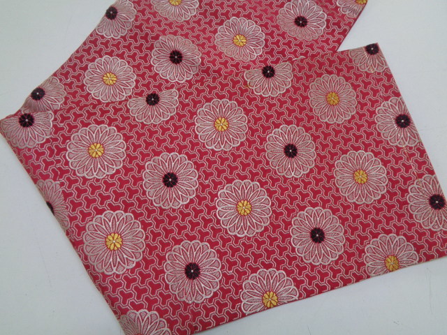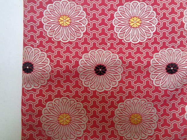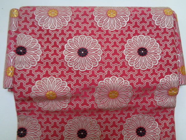 d151-80 名古屋帯 正絹 織 両面全通柄 金銀糸 金彩輪菊花文 昭和レトロ アンティーク
