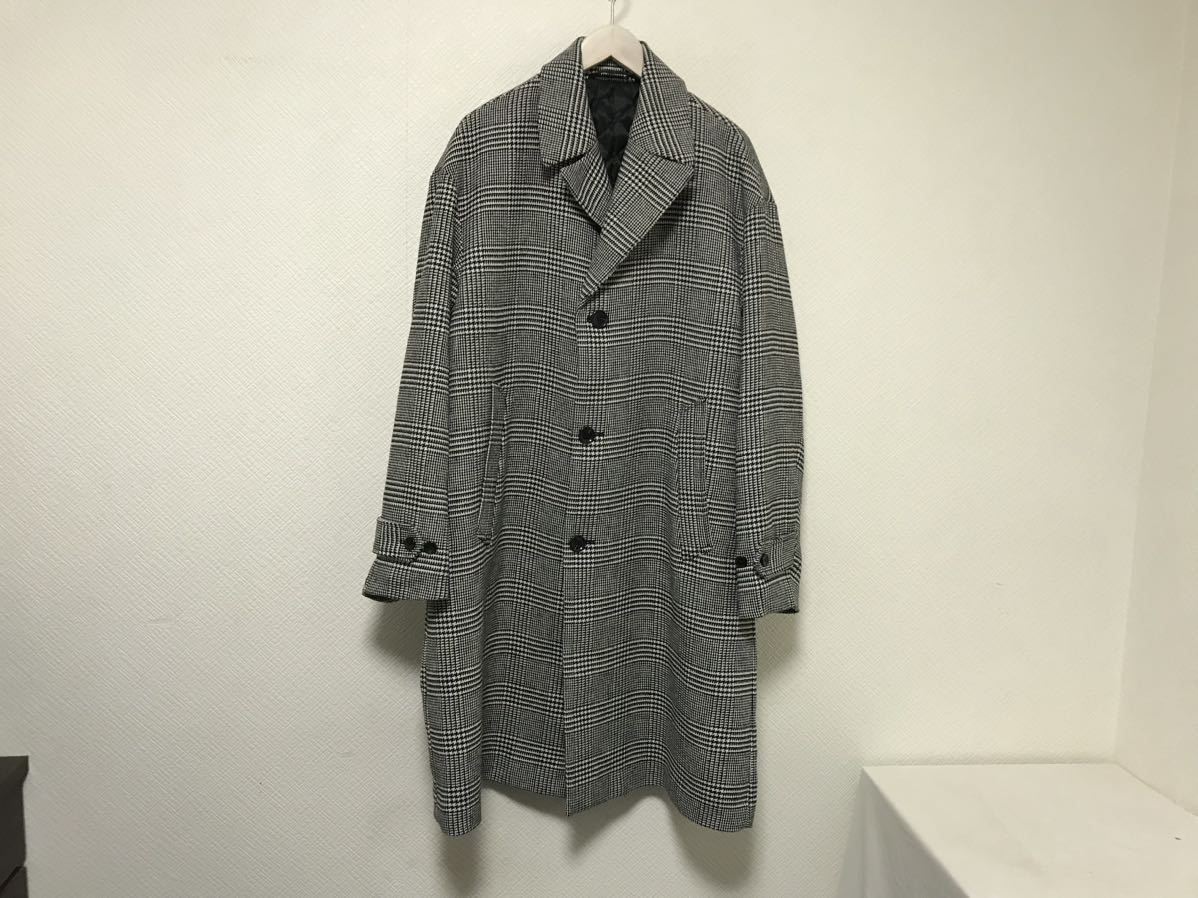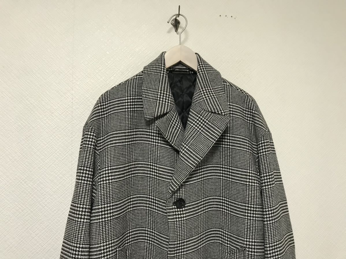 商品名:本物ジーユーGUワイドデカビッグ千鳥柄ロングチェスターコートジャケットメンズサーフアメカジビジネススーツ黒白ホワイトXL