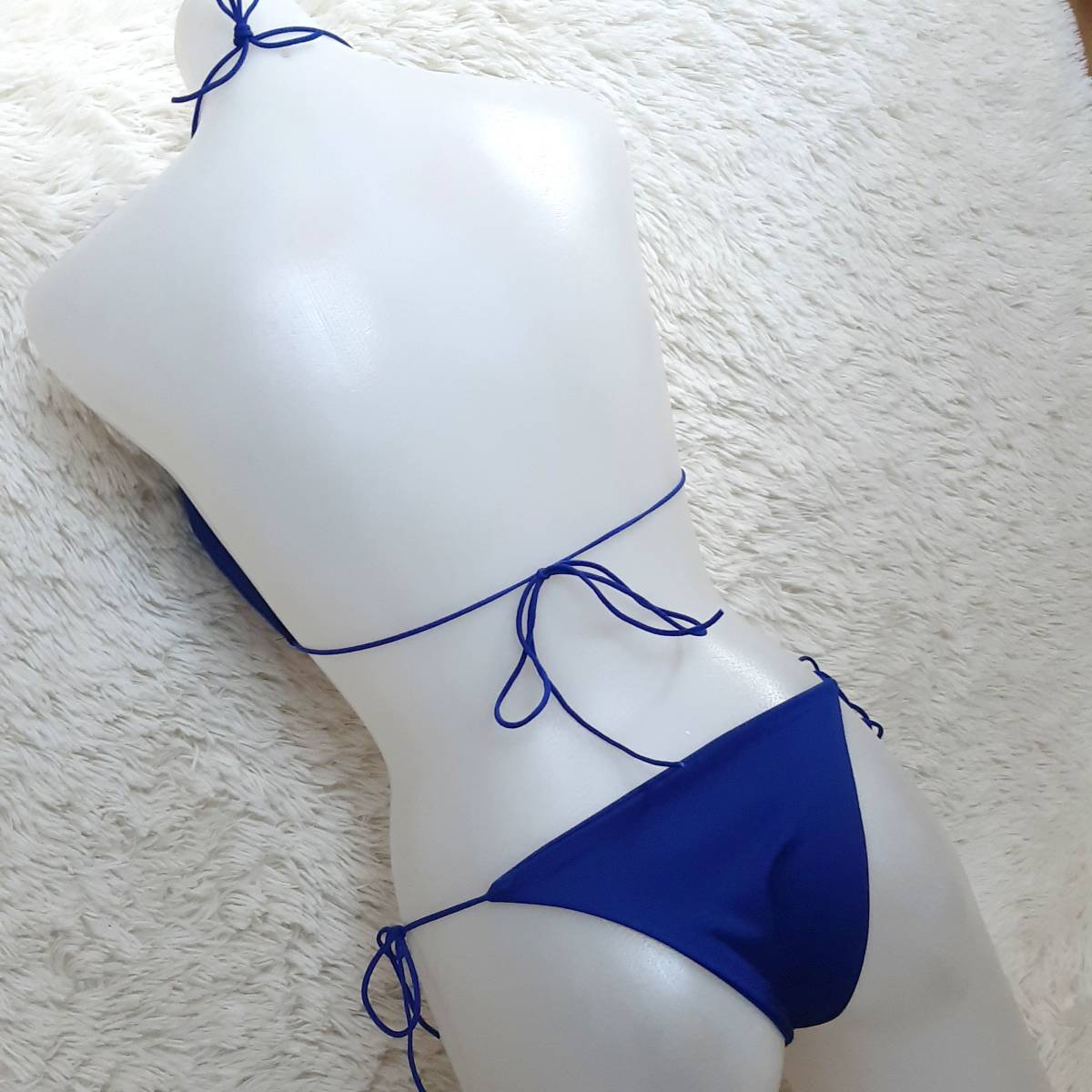 匿名配送★未使用 無地 柔らか ハイレグ 紐パン ビキニ 水着 L 青 ブルー V