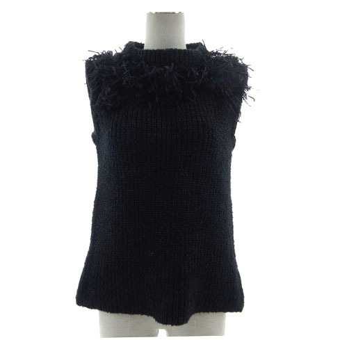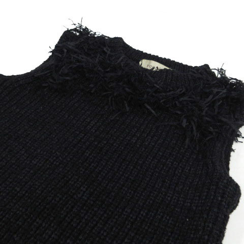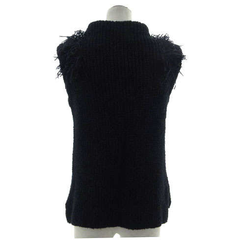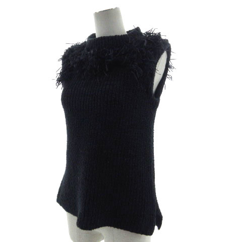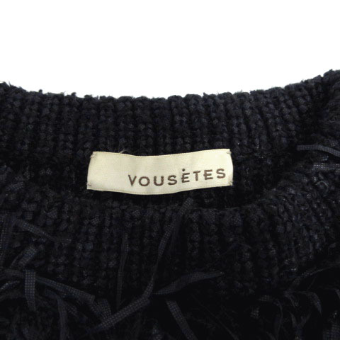 ヴゼット VOUSETES ニット モックネック フリンジ ノースリーブ コットン混 ネイビー 濃紺 レディース