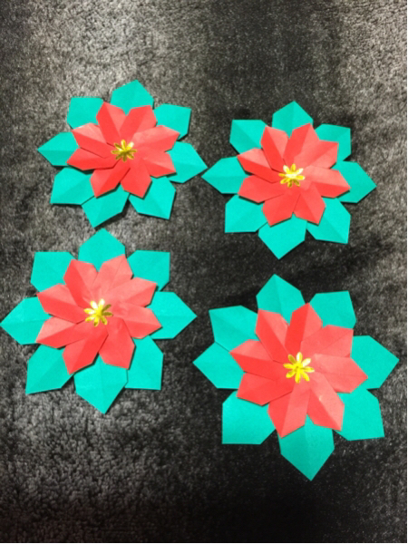●クリスマスポインセチア計4枚 : 縦横だいたい10.5センチくらいです。