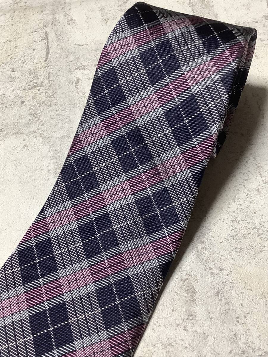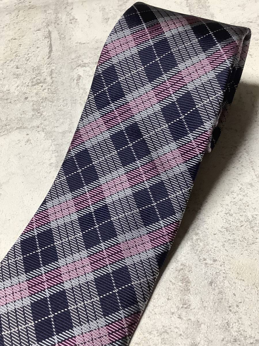 新品未使用 ノーブランドだから安い 日本製ネクタイ  シルク100%お買い得サービス ネイビーベースのチェック柄