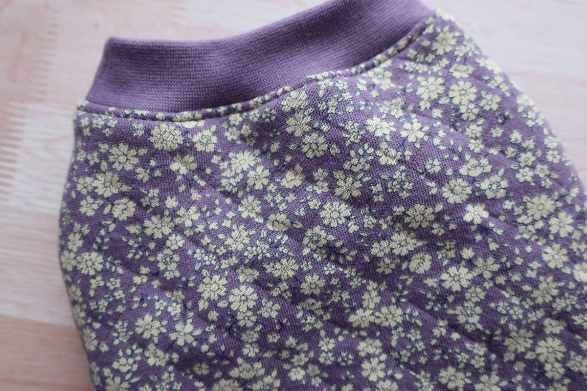 【S】首28センチ 胸囲40センチ 前丈23センチ 丈28センチ 秋冬のキルトニットです。 画像は青っぽく見えるかもしれませんが、紫色になります。 内側が長めなので女の子用です。