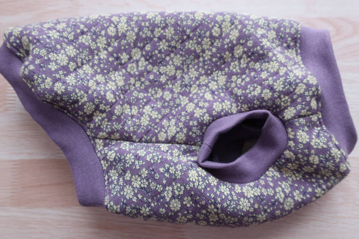 【S】秋冬キルトニット 紫色 花柄 小花 小型犬犬服ドッグウエアハンドメイド