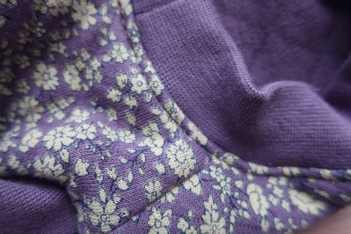家庭用ミシンで作っているため、ニットの毛羽立ちがあります。