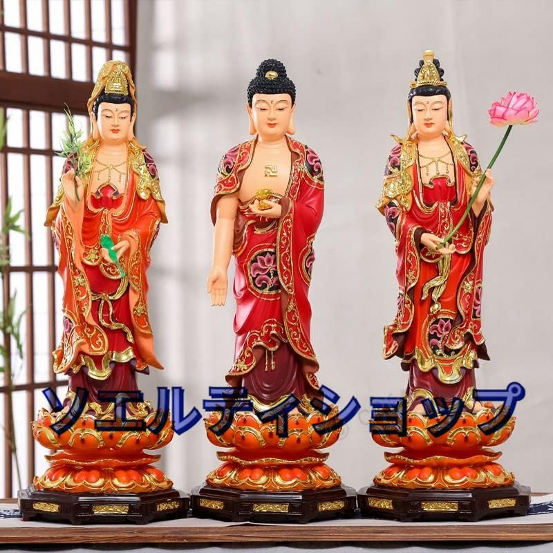 仏像樹脂ペイント置物 観音像 阿弥陀如来 【勢至菩薩 ?阿弥陀如来? 観音菩薩】 祈る 厄除け 置物 風水 開運 ご本尊 仏具 仏壇 【3点セット