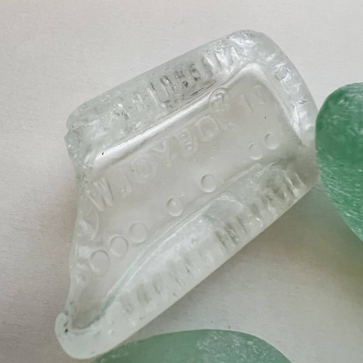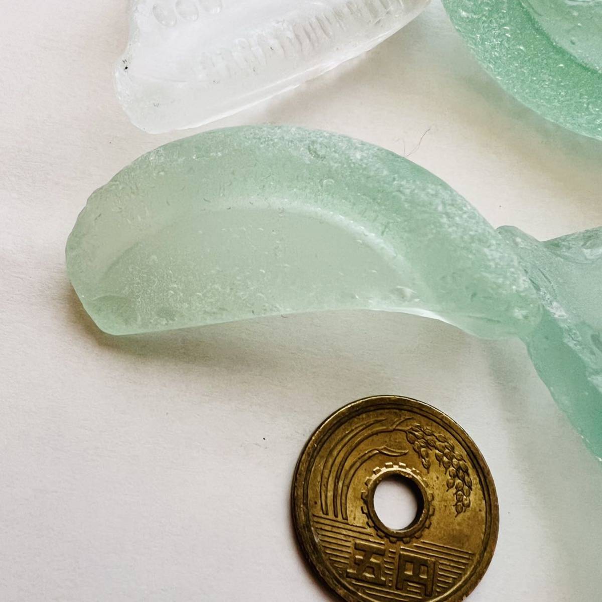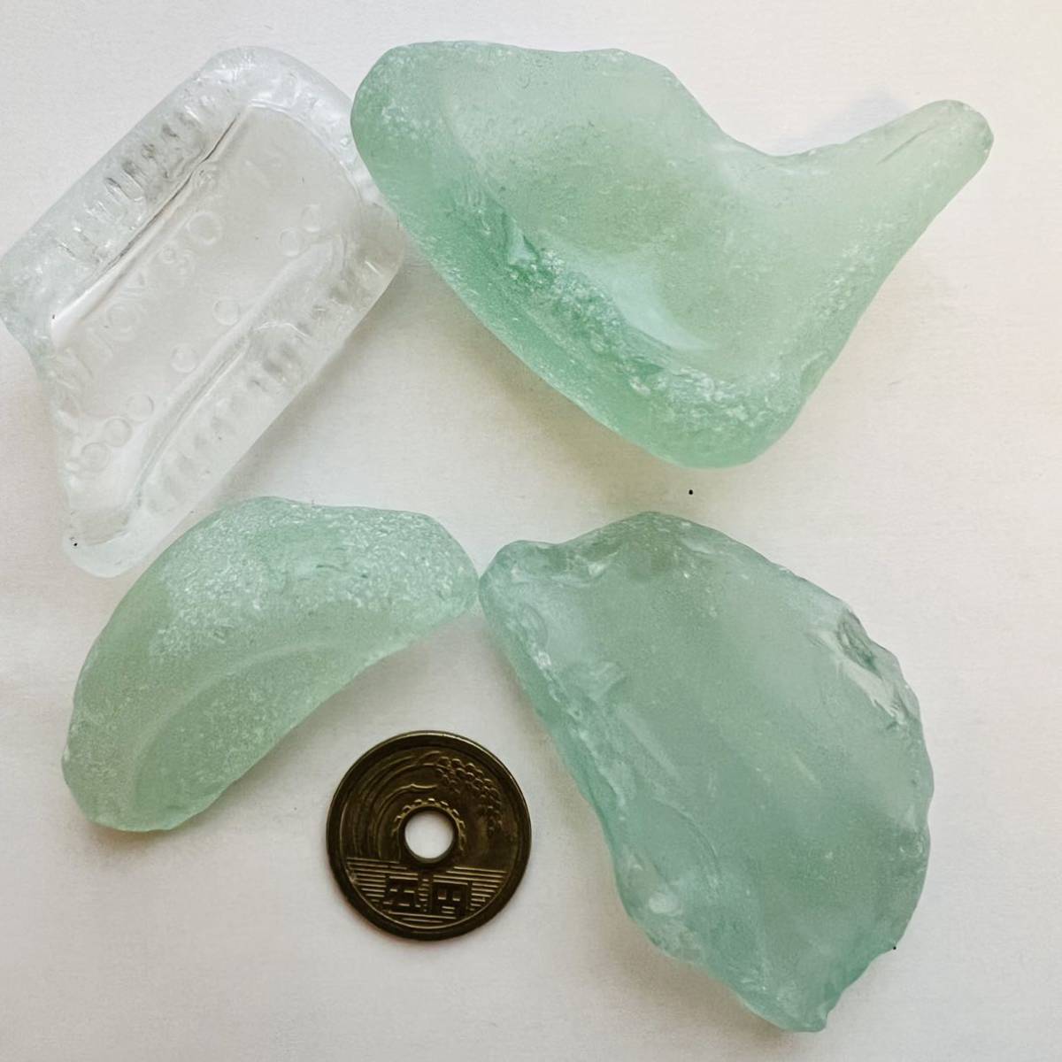こちらは瓶底のカケラ3つとサイド1つ。大きめシーグラス。