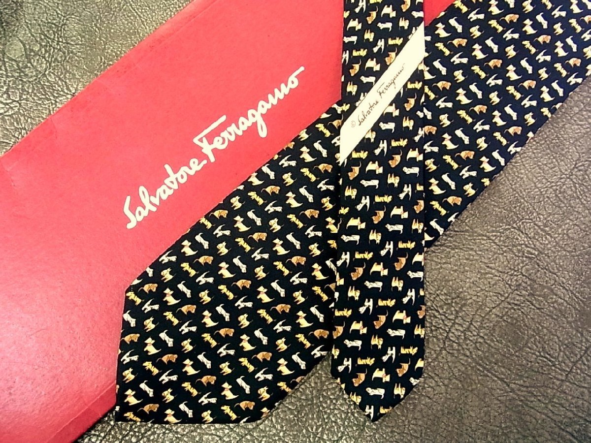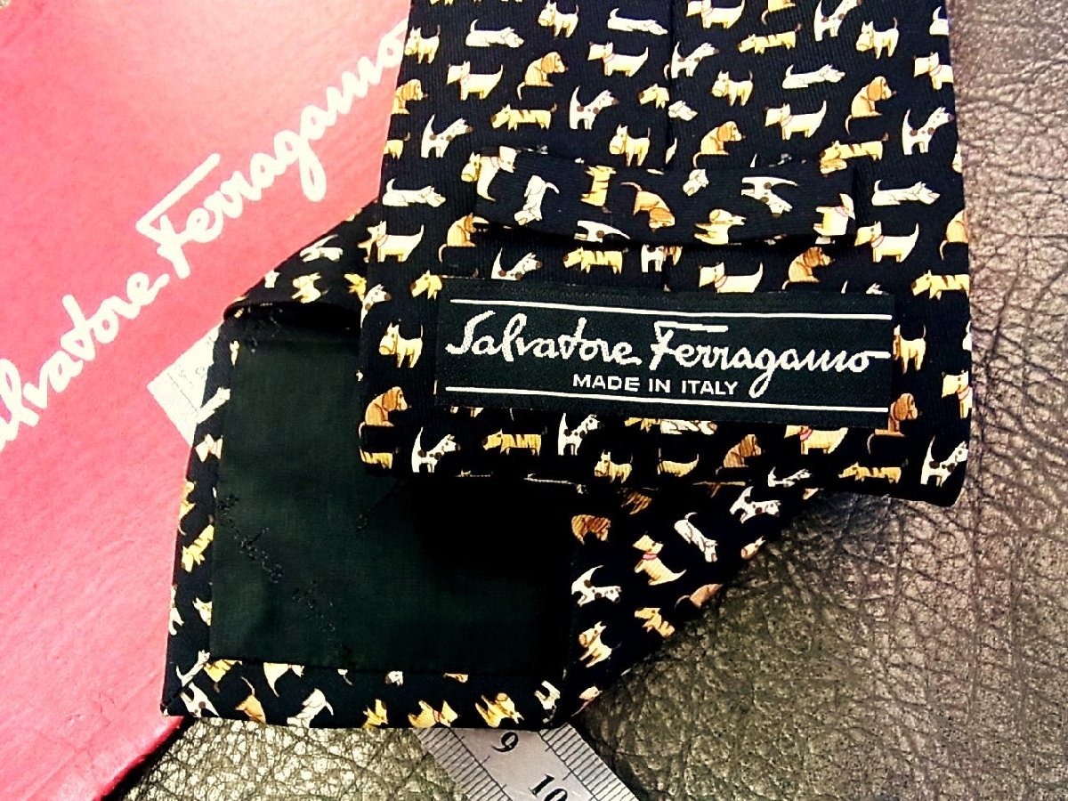 ♪vr0094♪良品♪【Ferragamo】フェラガモ【犬 テリア ダックスフント 動物 柄】ネクタイ
