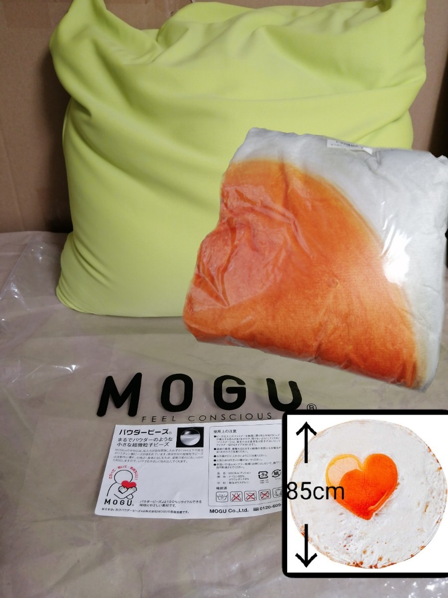 _**商品説明**__________ ■MOGUビーズクッション 頂きもので、使わずずっとクローゼットに眠っていました。 パッケージはスレや破れなどありますがクッションは綺麗です。 約40cm、厚さ約10cm ※中のビーズが出ないようファスナーは取っ手がないロックファスナー型です。 ■目玉焼きブランケット 未開封。直径約85cm 生地は薄そうです。 |
