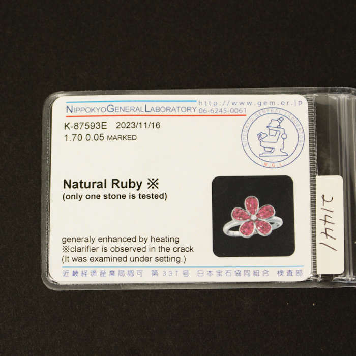 | 宝石 | ルビー《1.70ct》,ダイヤモンド《0.05ct》 |