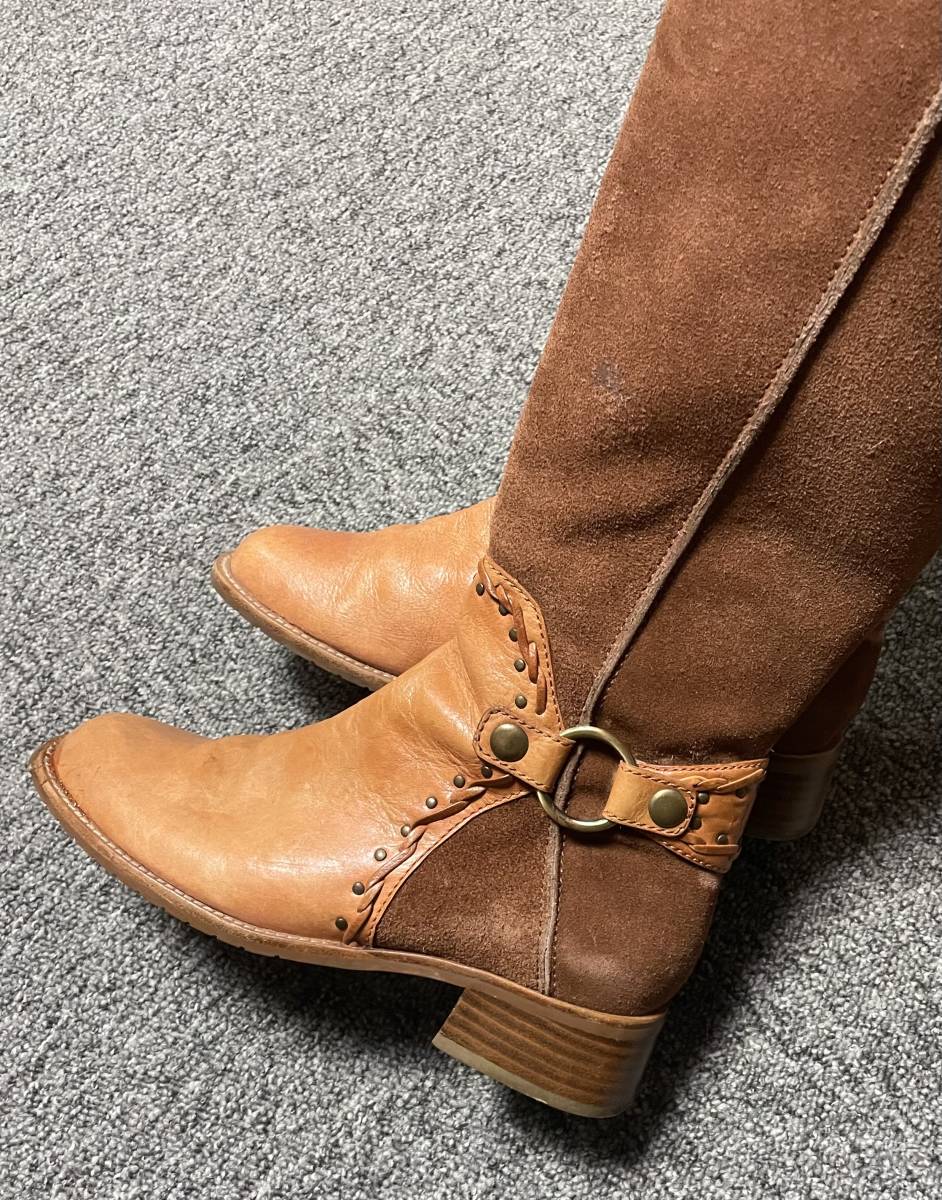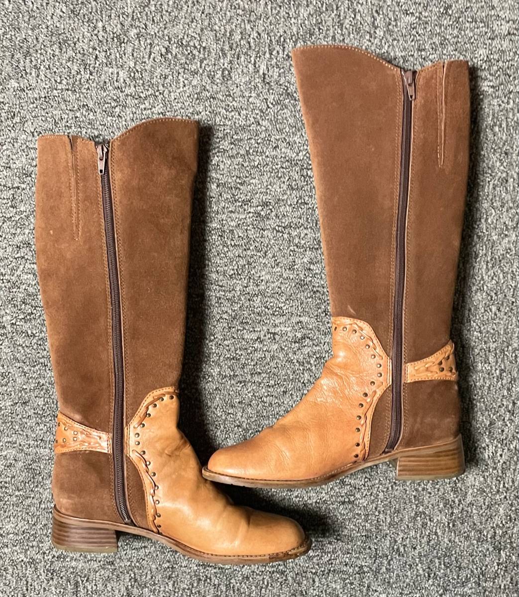 ヴィンテージ90’S★ロングブーツ★キャメルブラウン★凝ったウィップステッチ