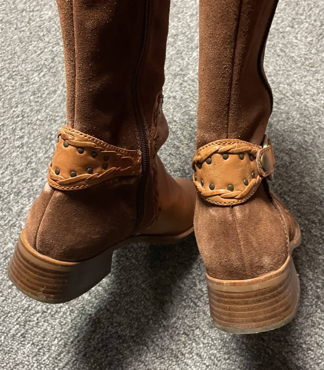 足首まわりにウィップステッチが施された、とても凝った1990年代のヴィンテージのロングブーツです。