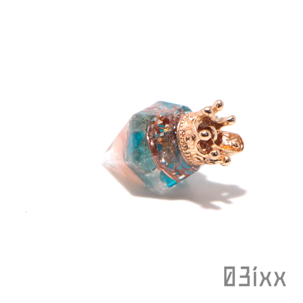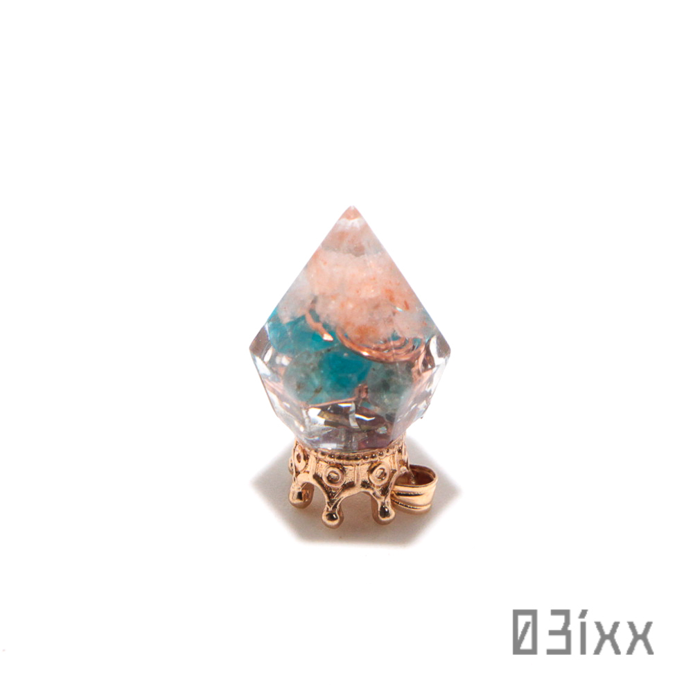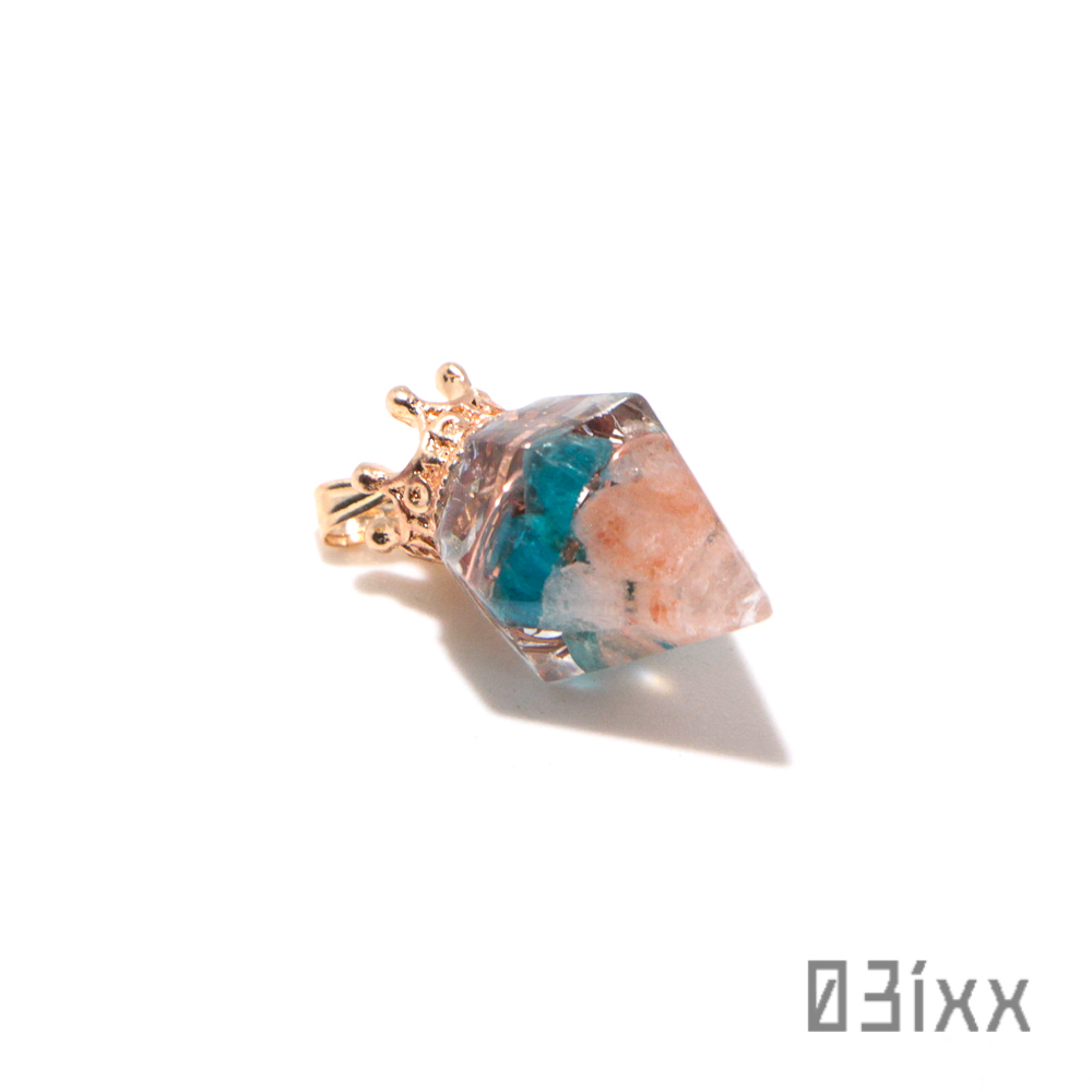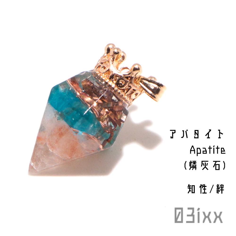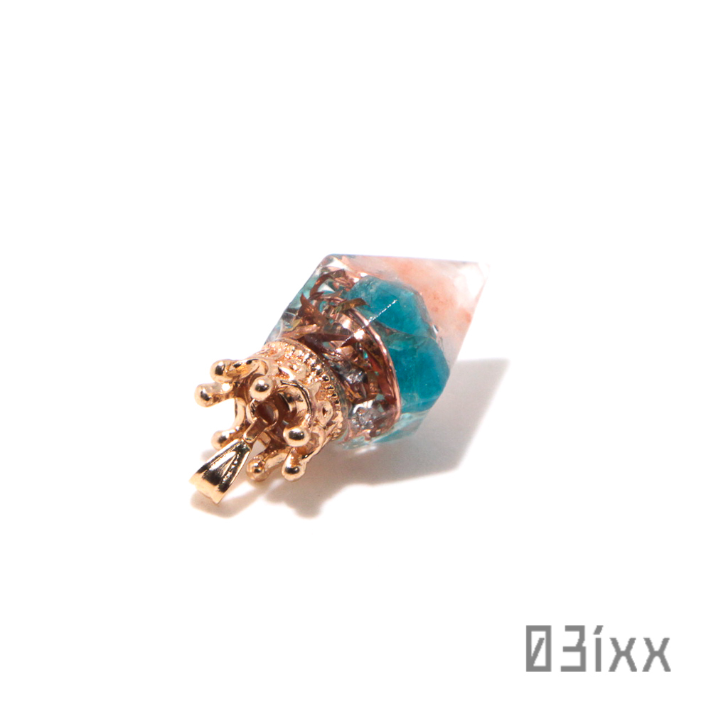 【送料無料・即決】盛塩 オルゴナイト プチダイヤ ペンダントトップ 王冠台座 アパタイト 燐灰石 ネオンブルー 絆の石 天然石