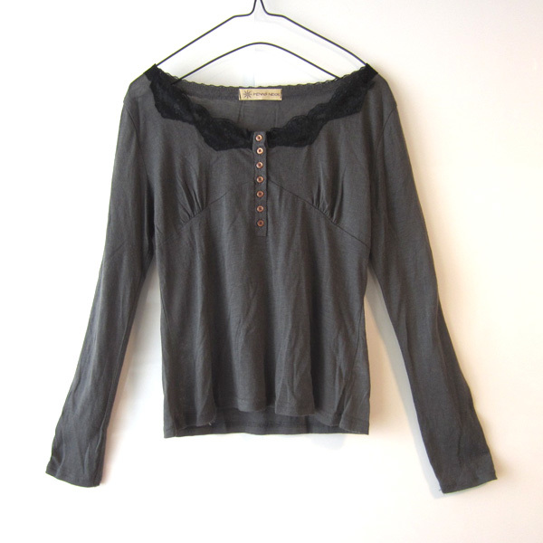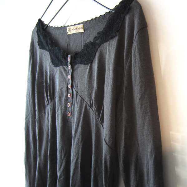 美品 PENNS NECK レース付き長袖カットソー グレー