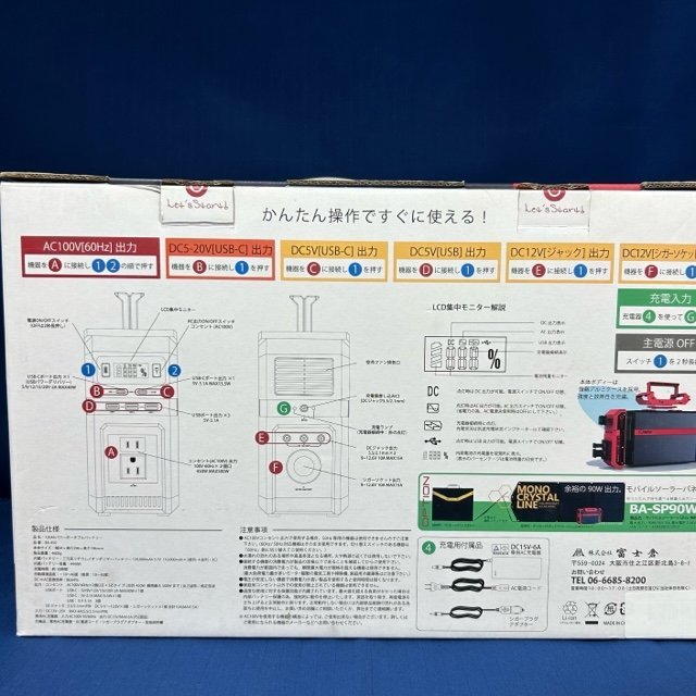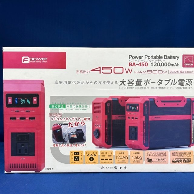 | 【富士倉】パワーポータブル電源 『BA-450』 ●容量:120,000mAh アウトドアや非常用予備電源等に活躍!【アウトレット品】 | |