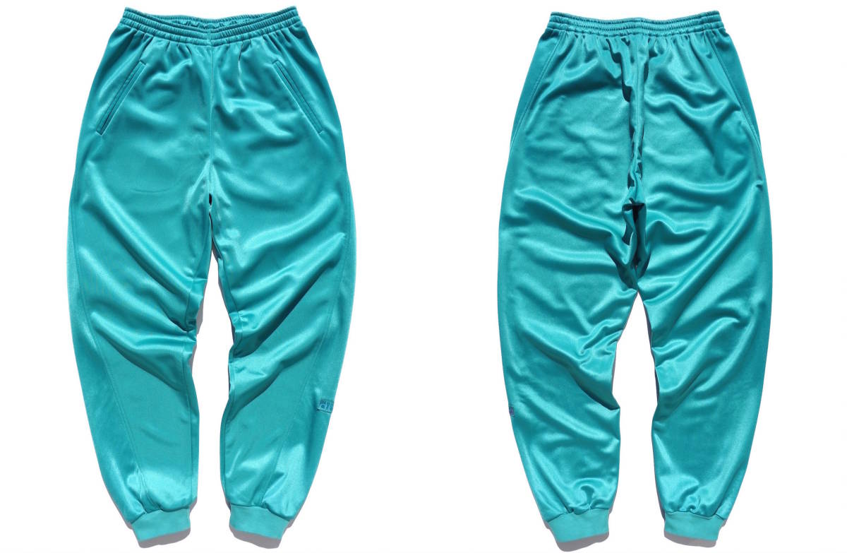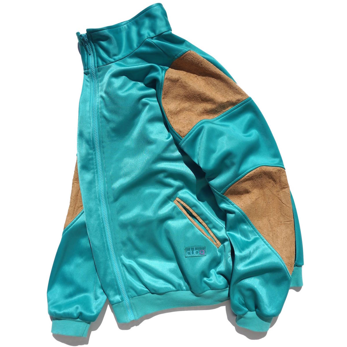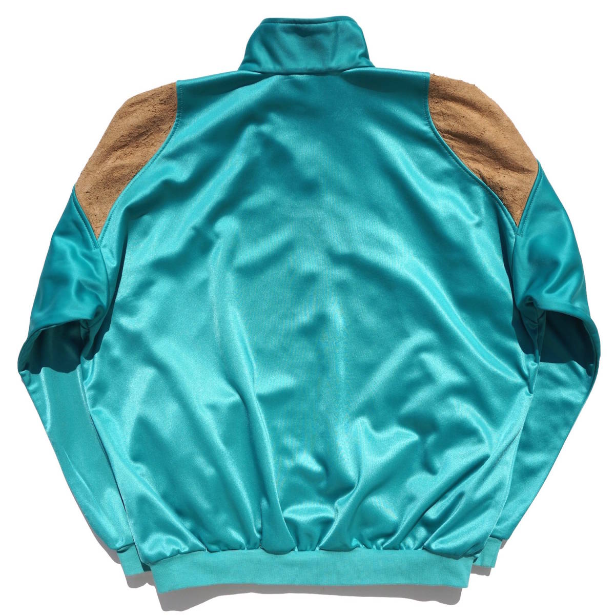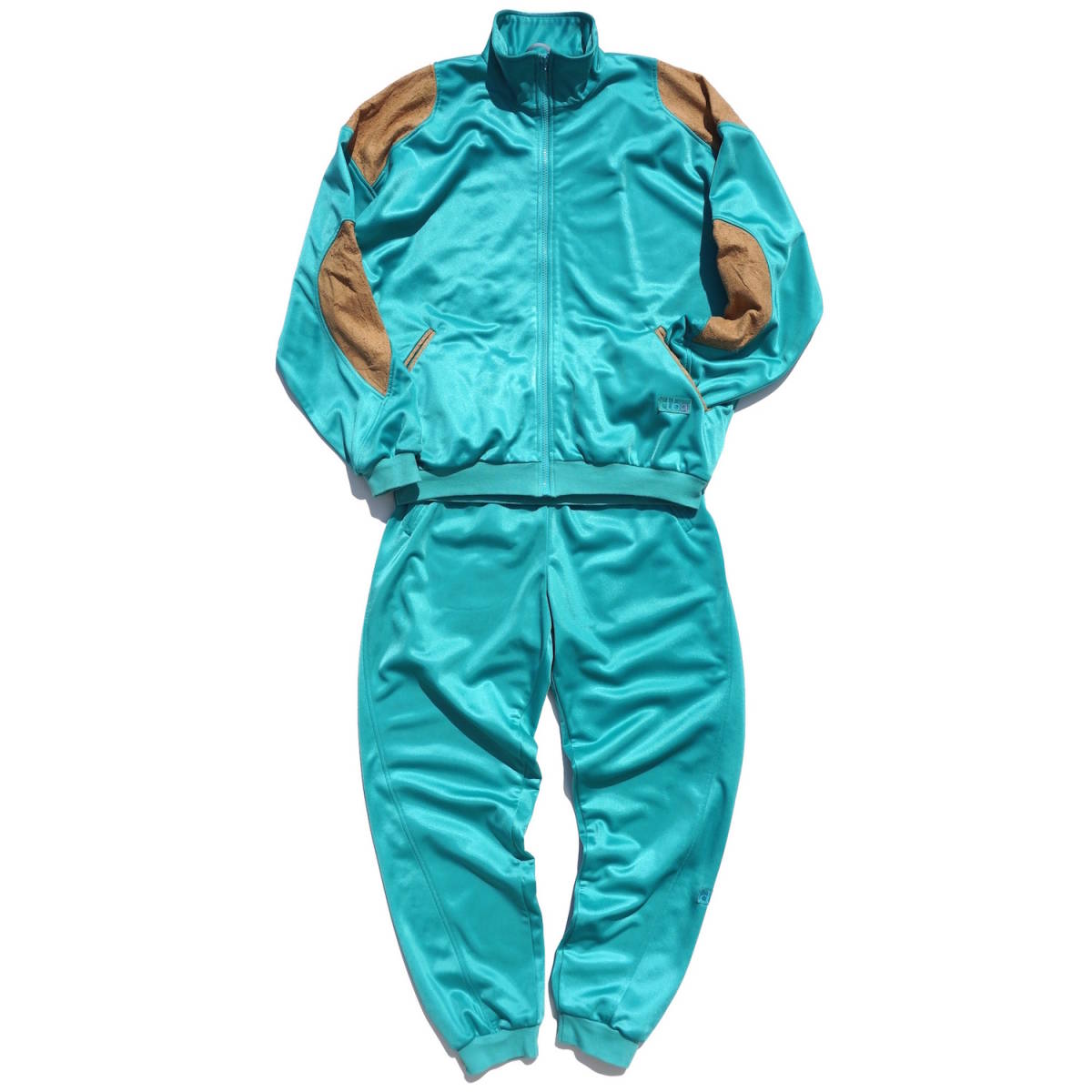 スエード切り替えデザインが特徴的な、トラックジャケット&パンツのセットアップ。