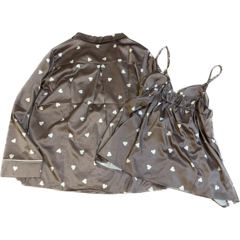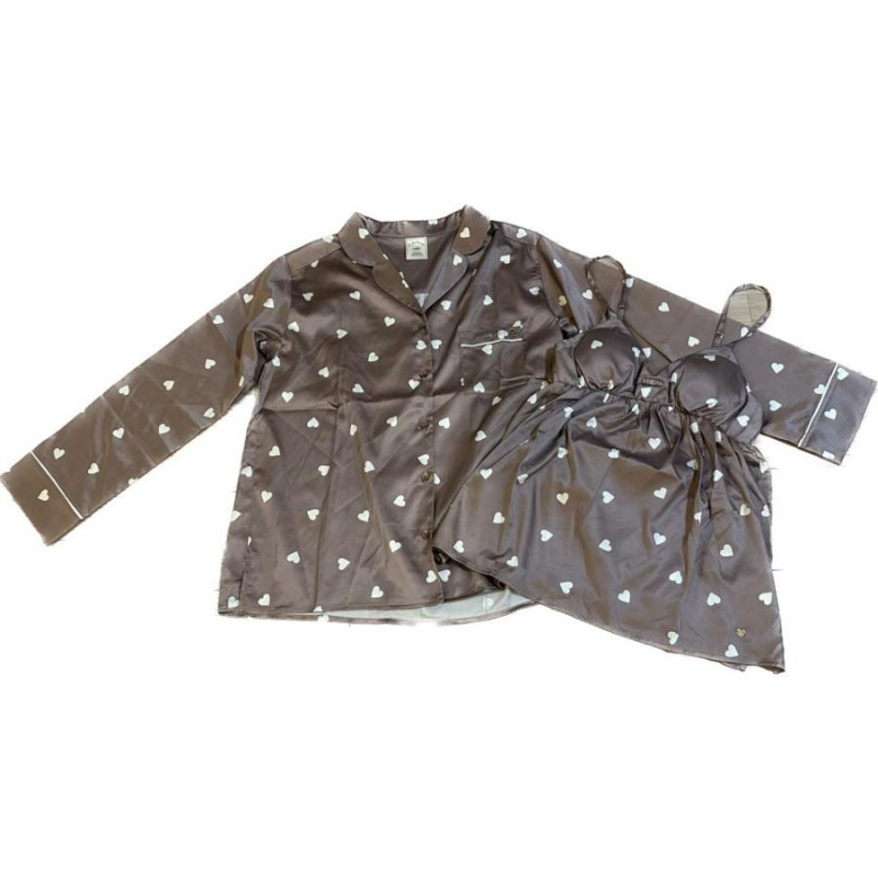 新品 ジェラートピケ サテン 2着セット ブラウン ハート柄