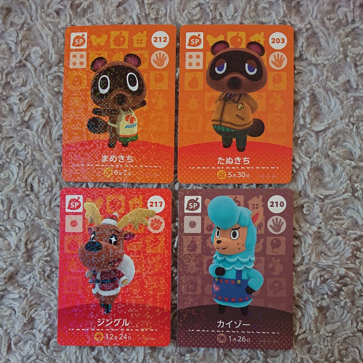 どうぶつの森 amiibo SP(キラ) 4枚セット(まめきち、たぬきち、ジングル、カイゾー) です。
