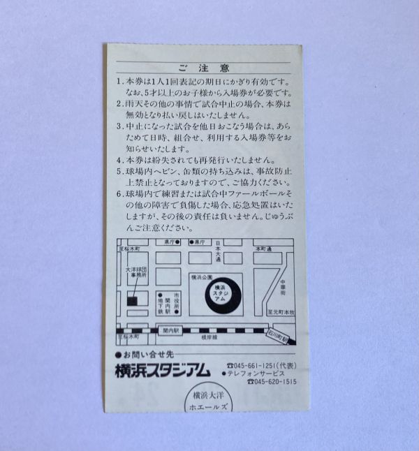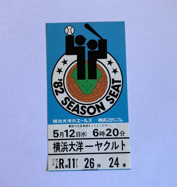 希少 当時もの 野球 1982年 5月12日 横浜太洋 対 ヤクルト 横浜スタジアム 観戦チケット 半券
