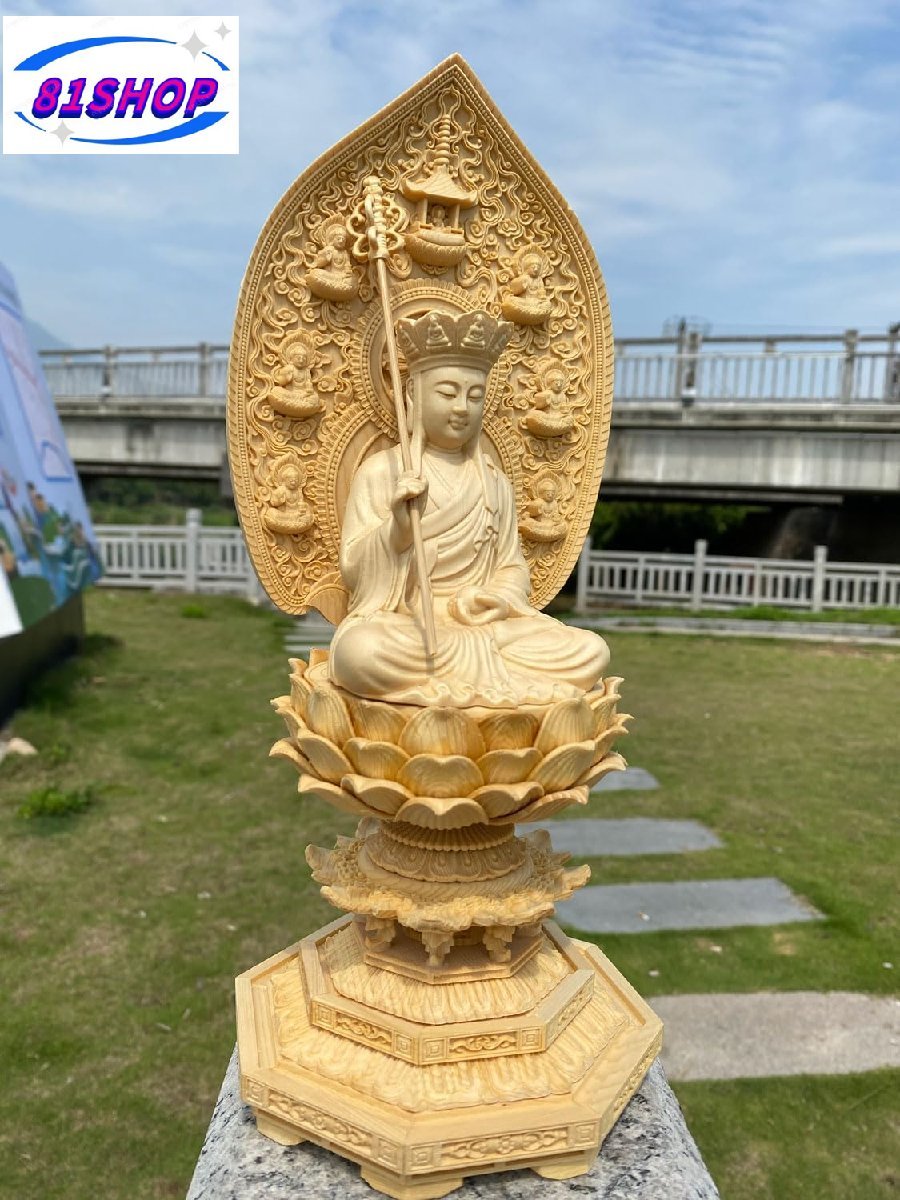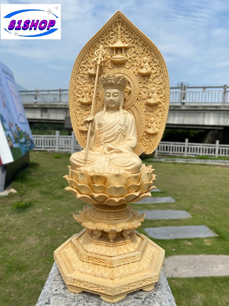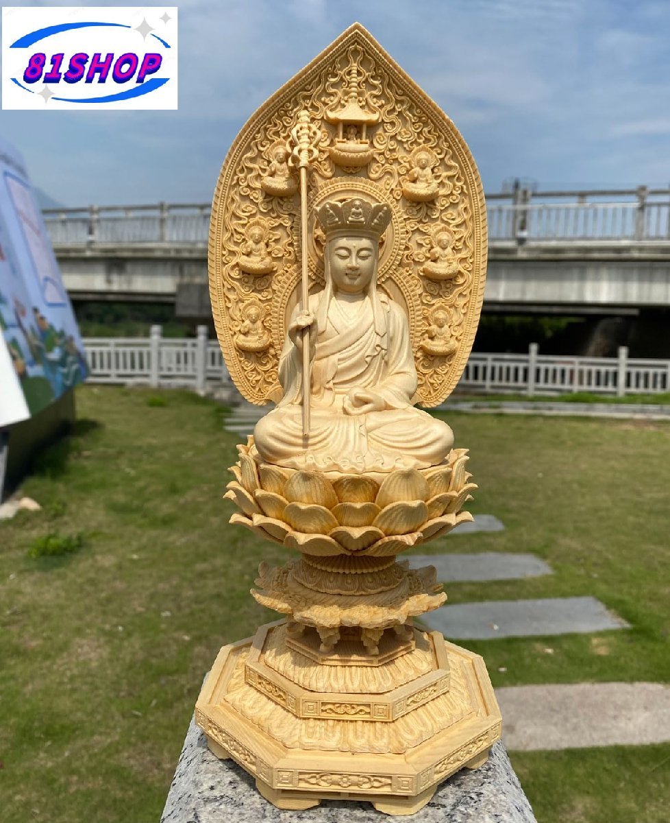 「81SHOP」地蔵菩薩 木彫り 仏像 32cm 桧木製『安産祈願・子育ての守護尊』 高級上彫り