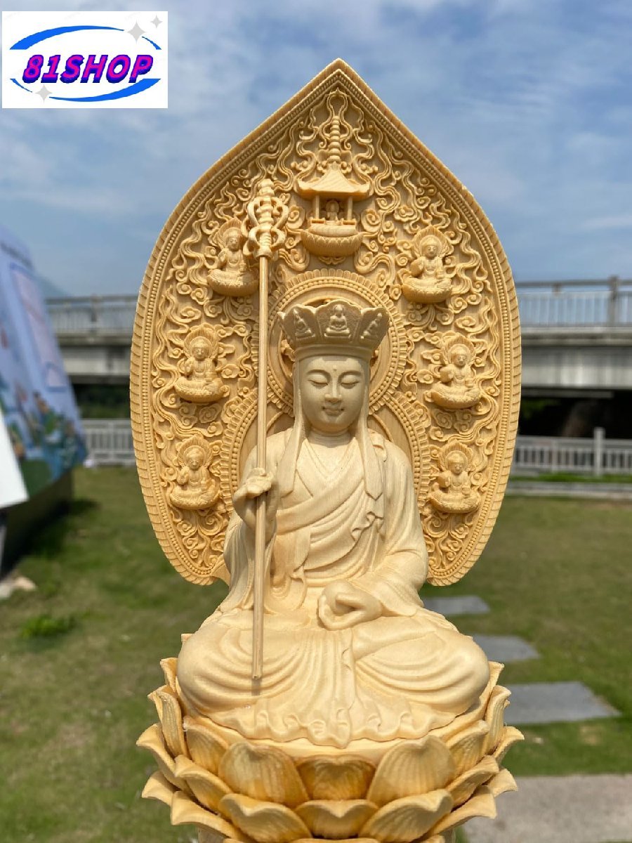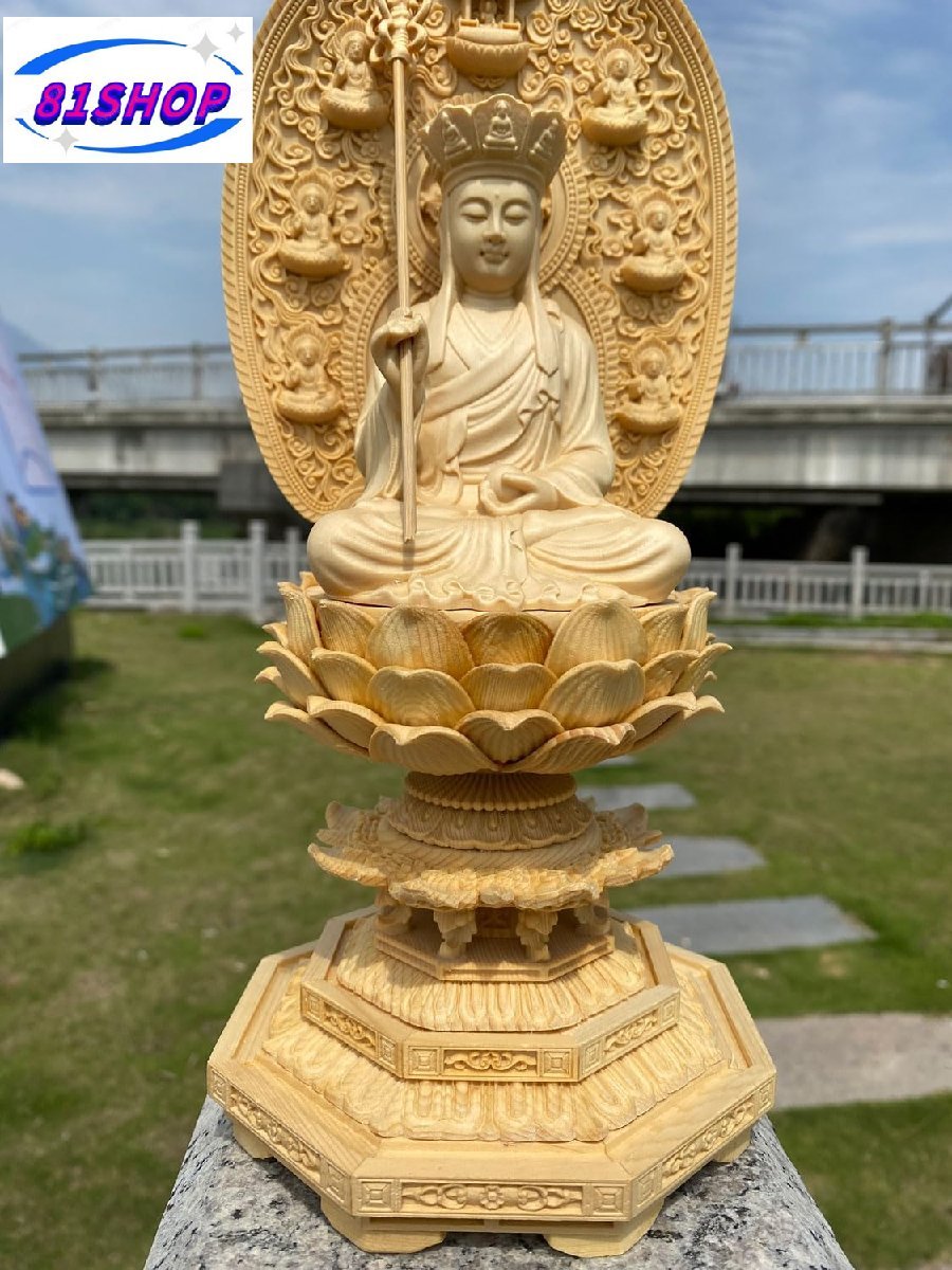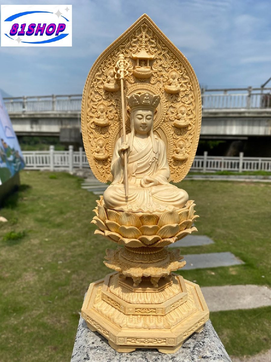 「81SHOP」地蔵菩薩 木彫り 仏像 32cm 桧木製『安産祈願・子育ての守護尊』 高級上彫り