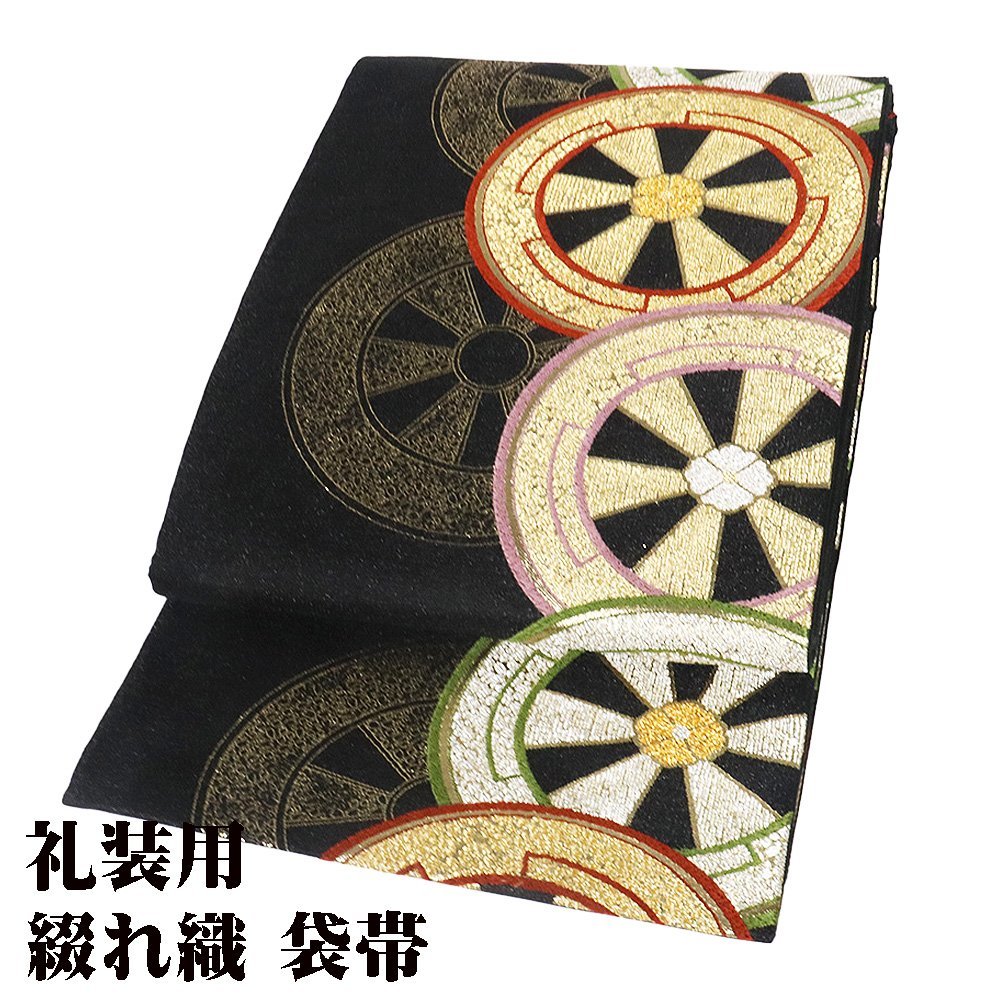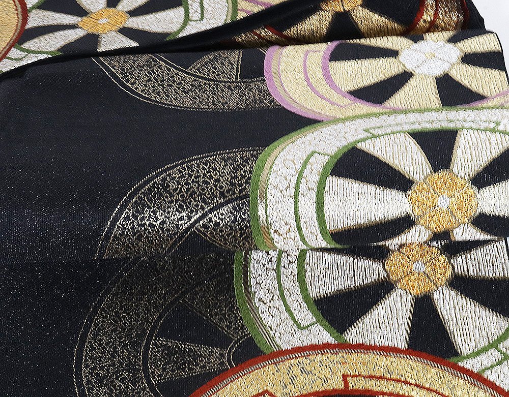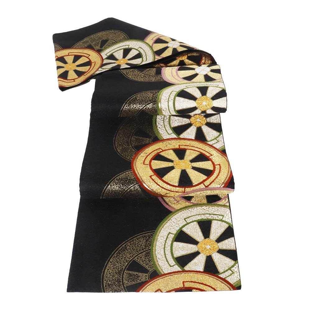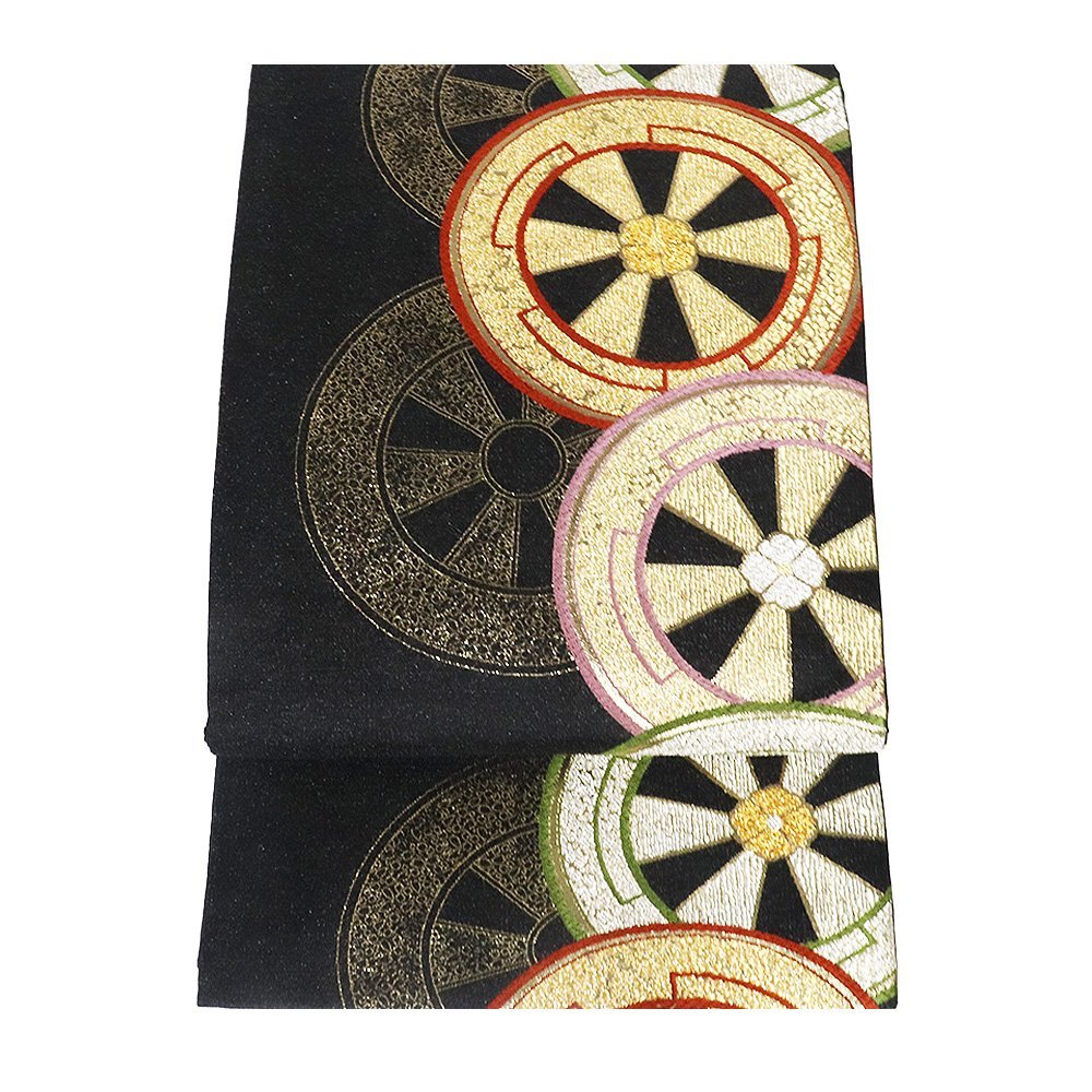 | 西陣織袋帯 つづれ織 黒地 車輪文 新品 仕立て上がり | |