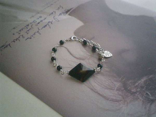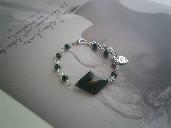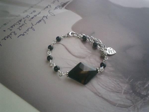 秋のヒロイン・・シリーズです♪大人の黒に魅せられて・・シックなオニキスのブレスレットです♪丸玉のオニキスにブラウンオニキスのトップを合わせてキュートな表情です♪オニキスの丸玉は5ミリ位、トップのブラウンオニキスは23×17ミリ位のダイヤカットです♪薔薇のメタルチャームを合わせてアンティークモダンしています♪長さは全長23センチ位で調節自由です♪♪お揃いのネックレスも出品しています♪シンプルで合わせやすいデザインを考えて作りました♪ハンドメイドをご理解いただいてノーリターン、ノークレームでお願いします♪