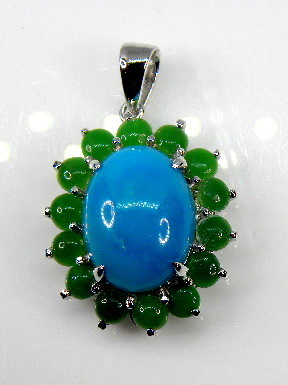 | ■天然トルコ石■ひすいで取巻き■SV.925■ペンダント | ||
