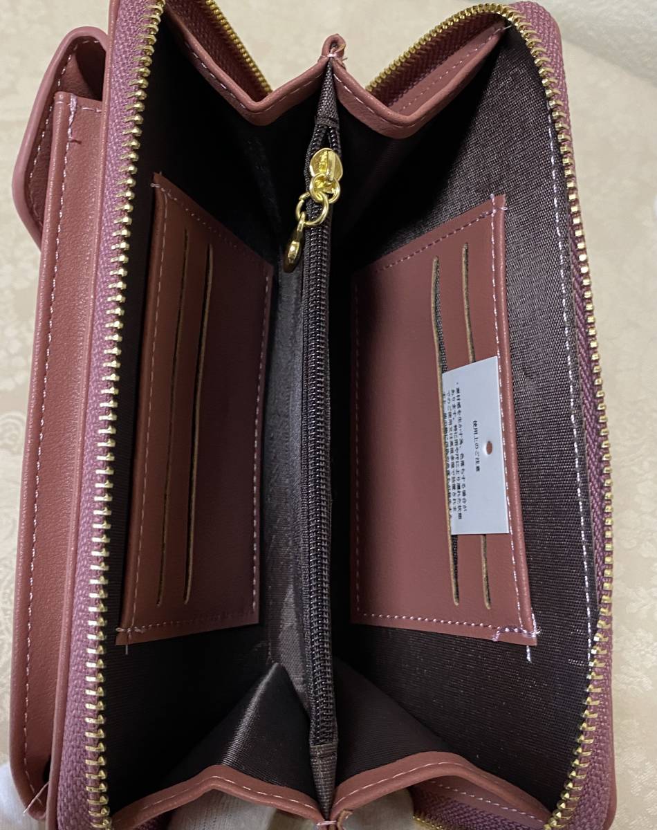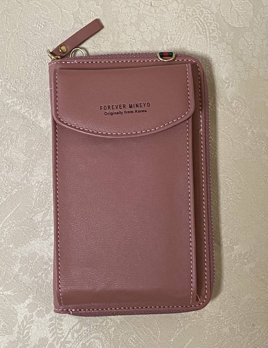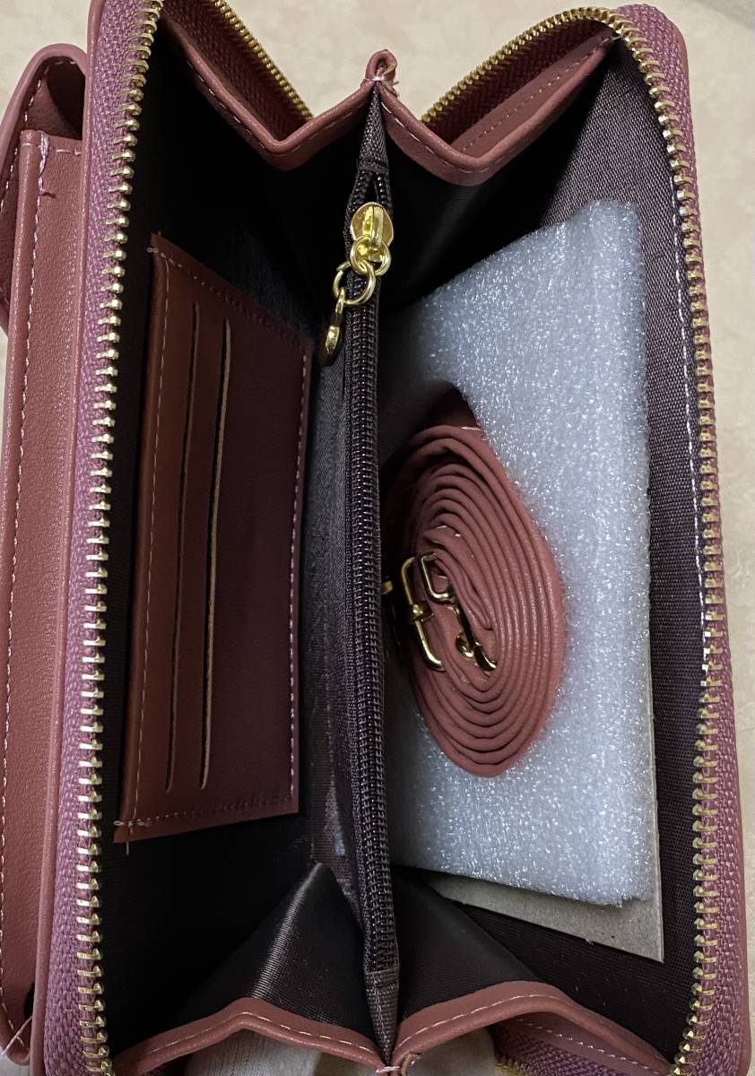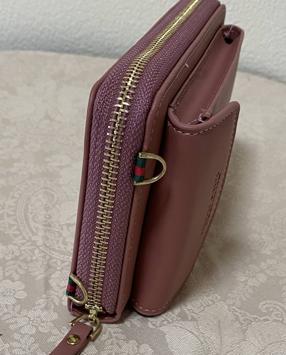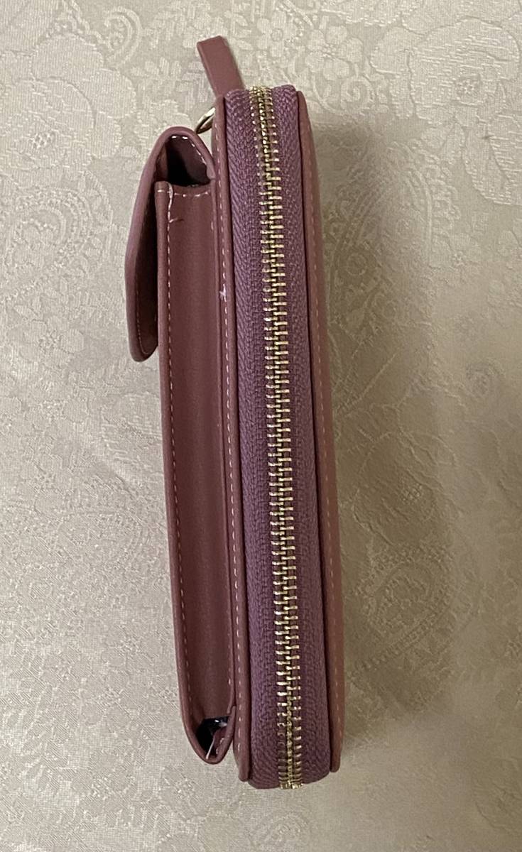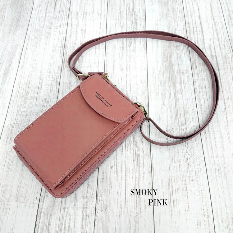【新品】【送料込み】スマホケース付き長財布 ショルダーストラップ付 スモーキーピンク