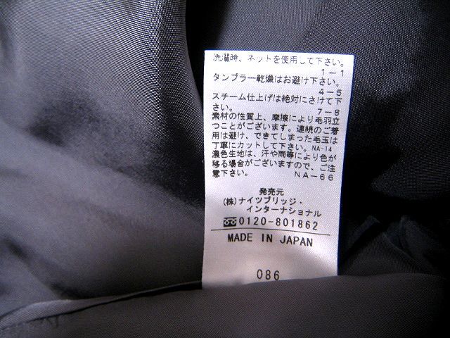 【素材】表・ウール87% ナイロン10% カシミヤ2% ポリウレタン1% 裏・キュプラ