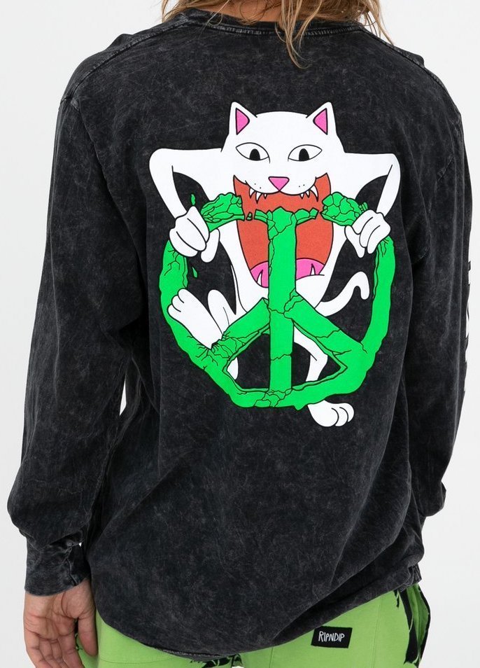 Ripndip Peace No Love L/S T-Shirt Black Mineral Wash S Tシャツ