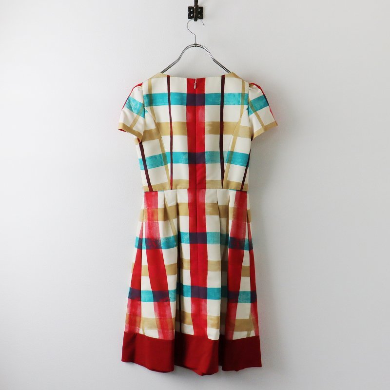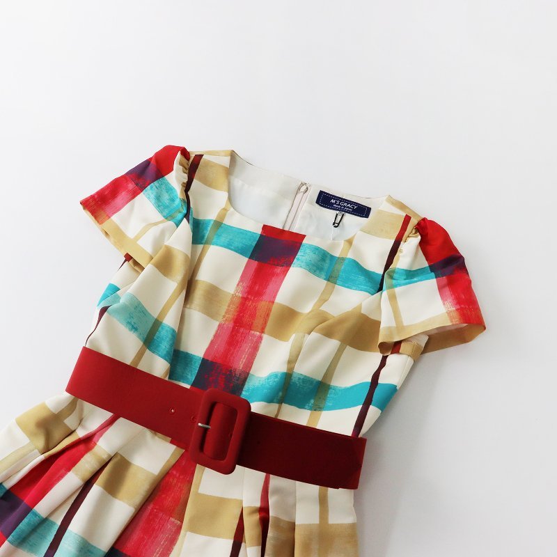未使用 保管品 2020年 エムズグレイシー M'SGRACY 水彩チェック ワンピース 36/ベージュ レッド ドレス【2400013585194】