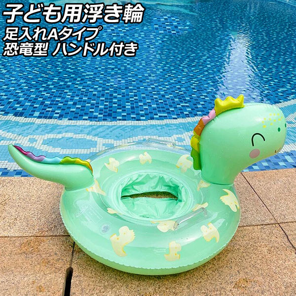 子ども用浮き輪 グリーン 足入れAタイプ PVC製 恐竜型 ハンドル付き AP-UJ0941-A-GR