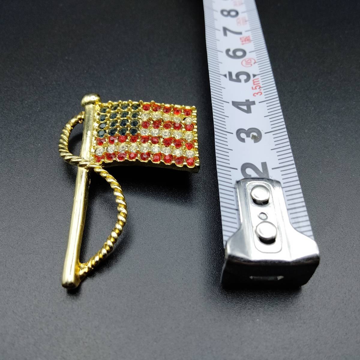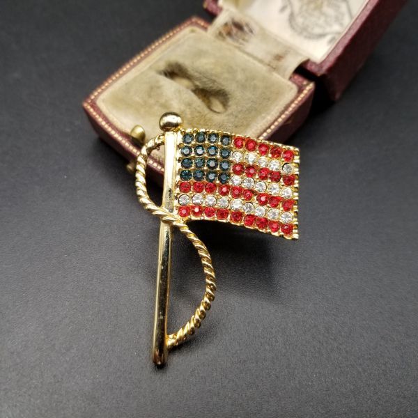 アメリカ国旗 モチーフ ラインストーン ゴールドトーン ヴィンテージ ブローチ ジュエリー 輸入 Y9-B