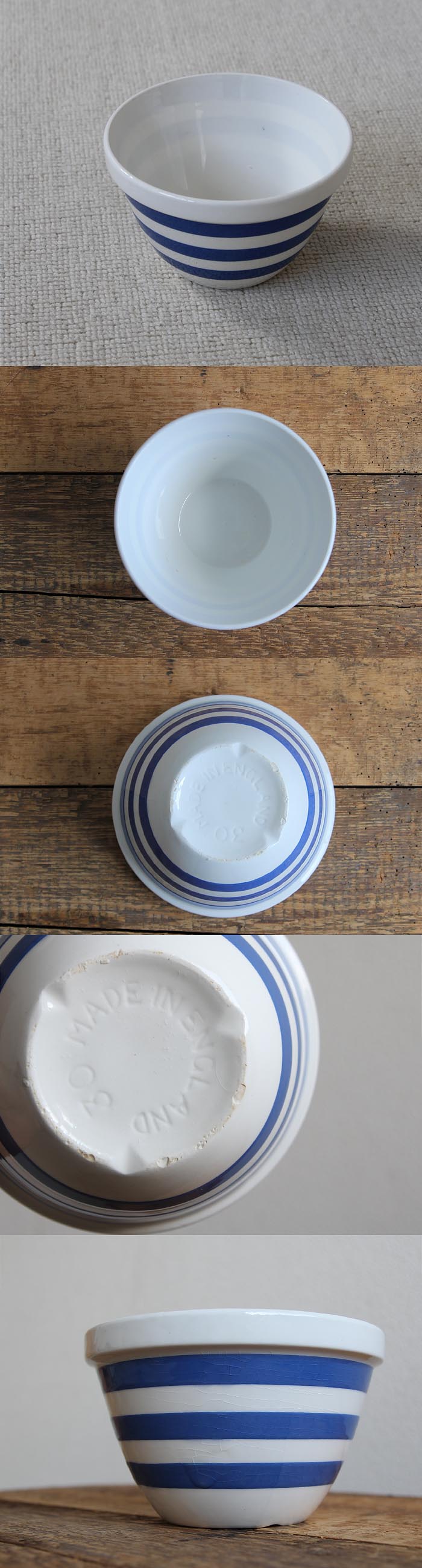 イギリス アンティーク ミキシングボウル コーニッシュウェア 陶器「ブルー&ホワイト ボーダー柄」V-831