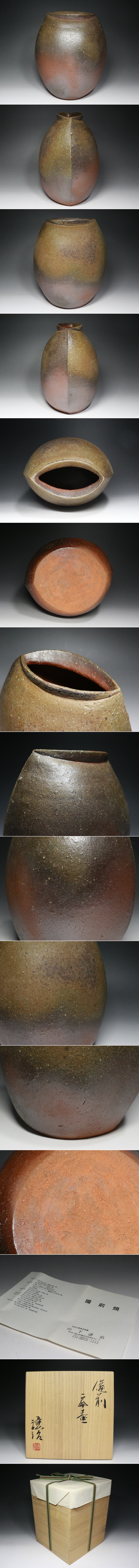 | ■備前■山下譲治・扁壷・花入・花瓶・花器・百貨店購入品・f767 | ||||||||||||||||||||