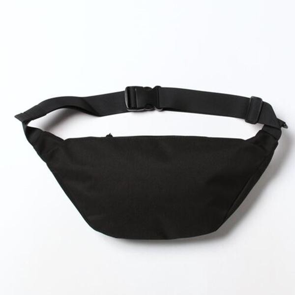 フロントにロゴが施されたスリムボディーなウエストバッグ。