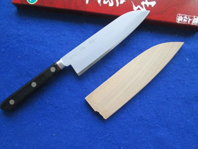 ブレードは半艶消しの高級仕上げ、sk鋼割込み包丁シリーズの最高級モデルです。