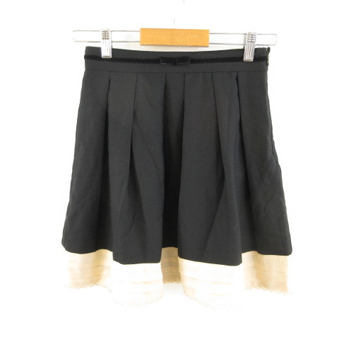 プライムパターン PRIME PATTERN スカート ミニ プリーツ レース 黒 M *T956 レディース