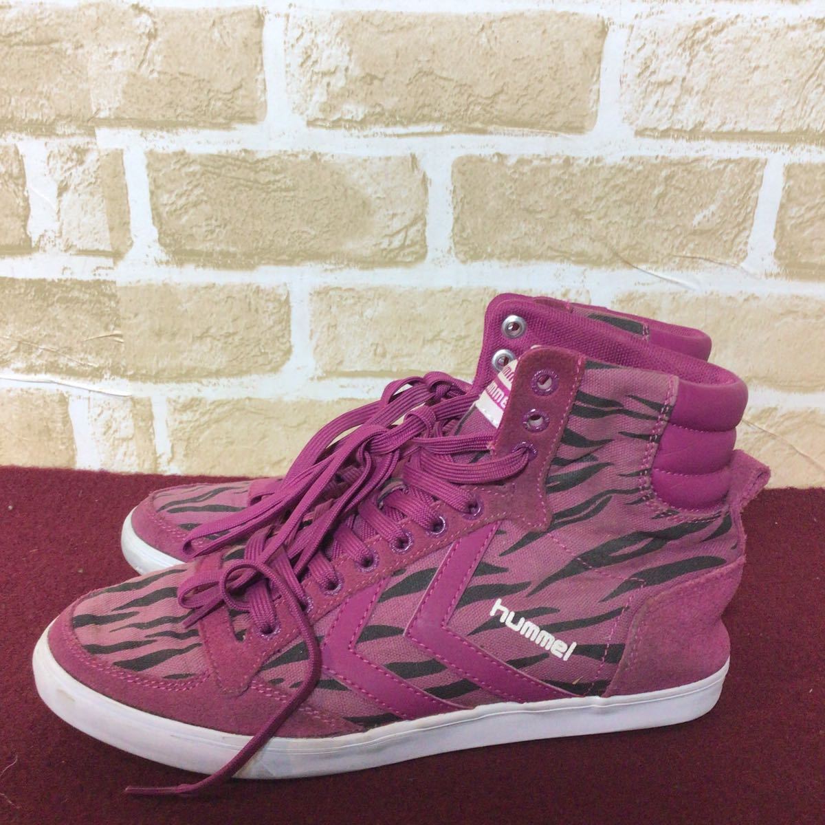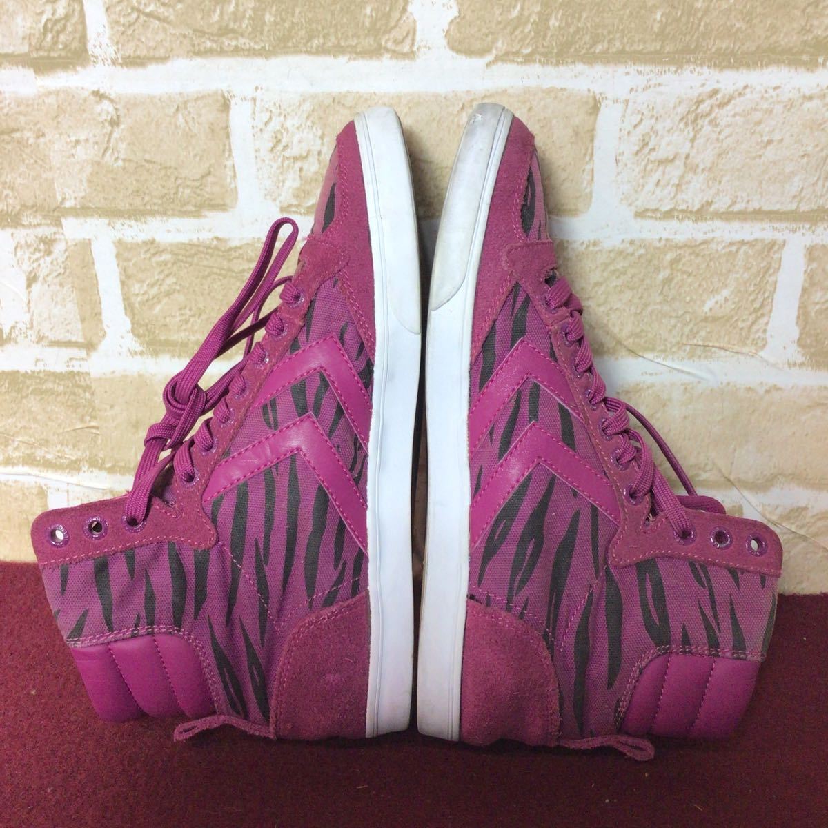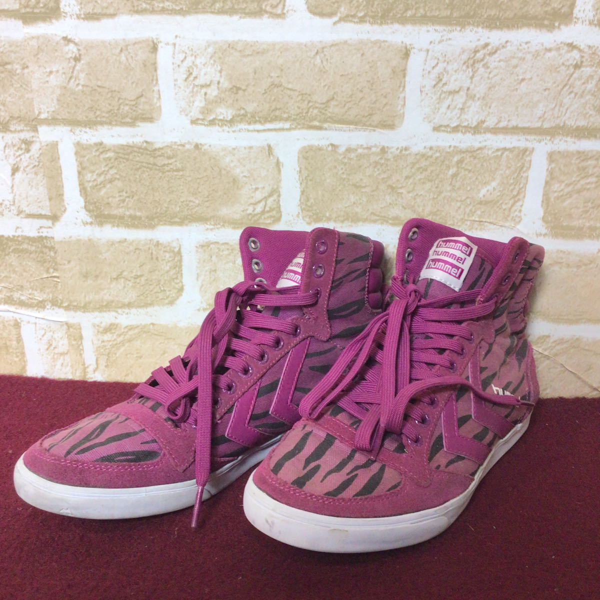 【売り切り!送料無料!】A-24 hummel!スニーカー!23!むらさき!パープル!ハイカット!ゼブラ柄!アニマル柄!かわいい!おしゃれ!中古